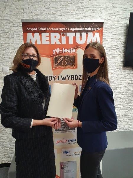 Podczas kameralnego spotkania dyrektor Meritum Katarzyna Stronczek podziękowała najlepszym uczniom Meritum za wszelkie działania i godne reprezentowanie Meritum oraz wręczyła pamiątkowe dyplomy. Młodym i zdolnym uczniom Meritum gratulujemy i życzymy kolejnych sukcesów!