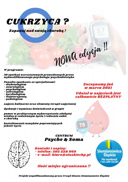 Śląskie Centrum Higieny Psychicznej zaprasza do udziału w bezpłatnych programach wspierających działania walki z cukrzycą oraz nadmierną masą ciała.