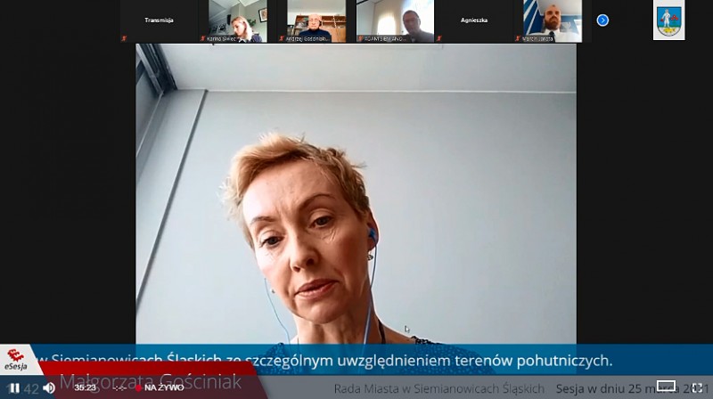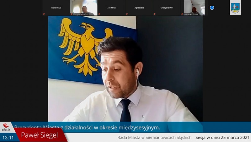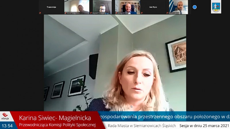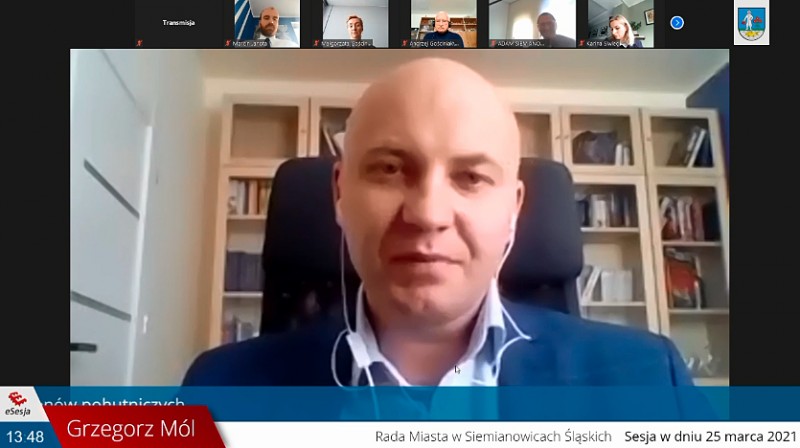 Wczorajsze (25.03) posiedzenie Rady Miasta Siemianowice Śląskie, podobnie jak poprzednie spotkania, odbyło się w formie zdalnej. Proponowany porządek obrad uzupełniono o dodatkowe projekty uchwał w sprawie: zmian budżetu miasta na rok 2021 oraz zmian wieloletniej prognozy finansowej na lata 2021-2038. Po zatwierdzeniu protokołu z poprzedniej sesji, głos zabrała I zastępca prezydenta miasta, Agnieszka Gładysz, która przedstawiła sprawozdanie z działalności międzysesyjnej Prezydenta Miasta Siemianowice Śląskie. W swojej wypowiedzi poruszyła przede wszystkim kwestie związane ze szczepieniami w naszym mieście informując m. in. że do dnia 25.03 br. zostało zaszczepionych 9309 mieszkańców pierwszą dawką, w tym 3026 drugą dawką. Ponadto radni dowiedzieli się, że aktualnie wszystkie łóżka covidowe w siemianowickim szpitalu są zajęte. W tej części sesji nie zabrakło również pytań radnych o aktualną sytuację epidemiologiczną w Siemianowicach Śląskich jak i o funkcjonowanie żłobków i przedszkoli w kontekście nowych obostrzeń.