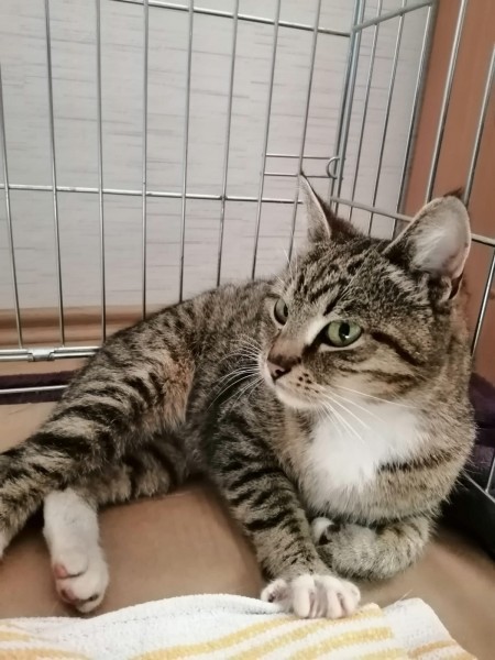 W 2019 roku dostrzegliśmy kotkę uciekającą przed innymi kotami. Była przez nie bita. Przez te dwa lata kotka była dokarmiana. Dopiero teraz udało się ją złapać. Jest malutka, bardzo płochliwa, nadal wystraszona. Obecnie po operacji, sterylizacji. Jest czysta, odrobaczona, odpchlona, korzysta z kuwety.