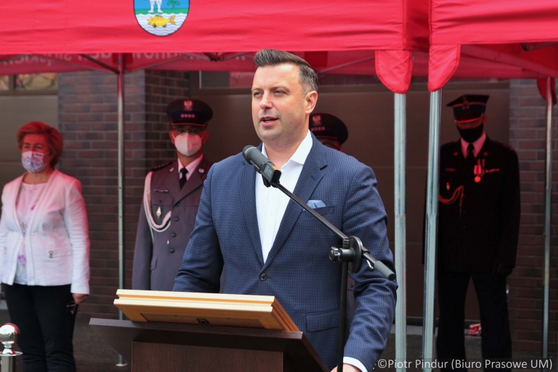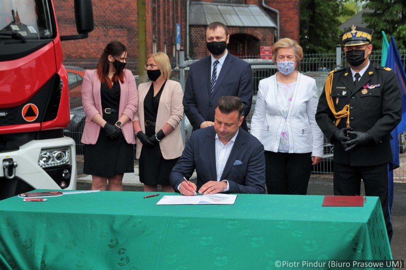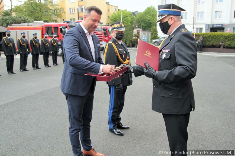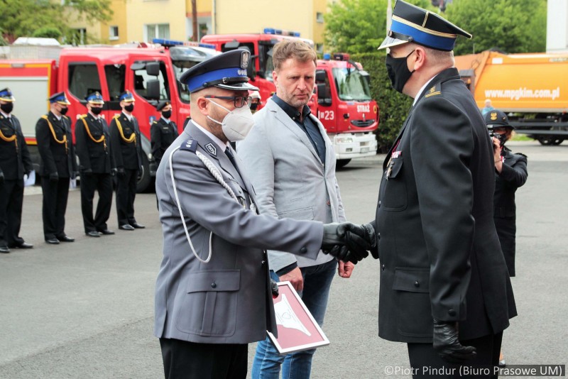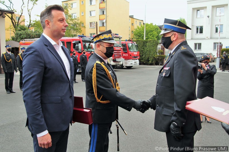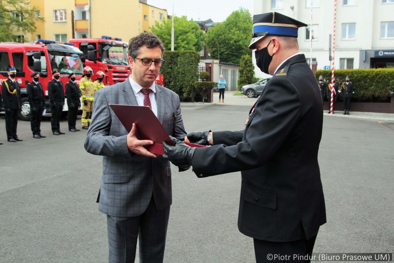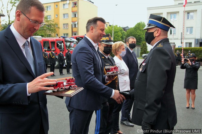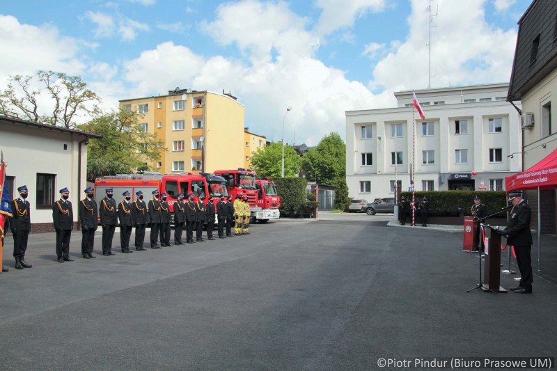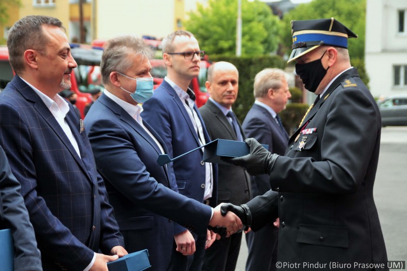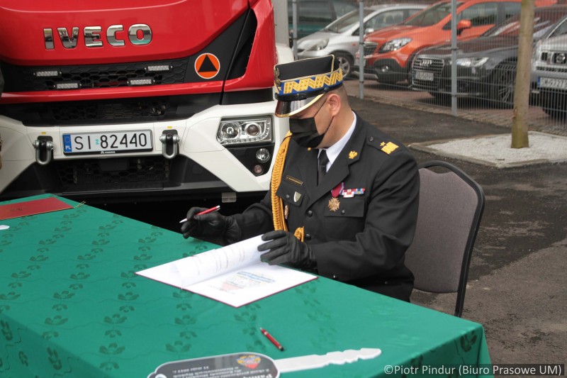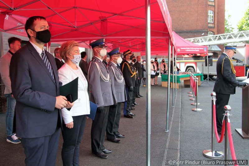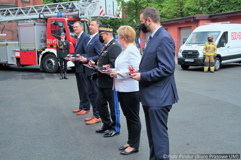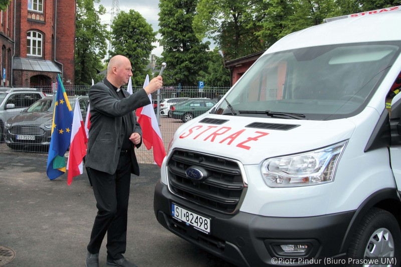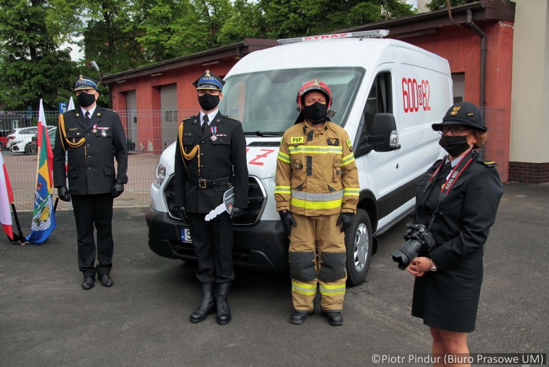 Ponadto Śląski Komendant Wojewódzki PSP nadbryg. Jacek Kleszczewski przekazał samochód kwatermistrzowski SLKw Ford Transit, który został zakupiony ze środków Komendy Wojewódzkiej PSP w Katowicach, Komendantowi Miejskiemu Państwowej Straży Pożarnej st. bryg. Rafałowi Świerczkowi.