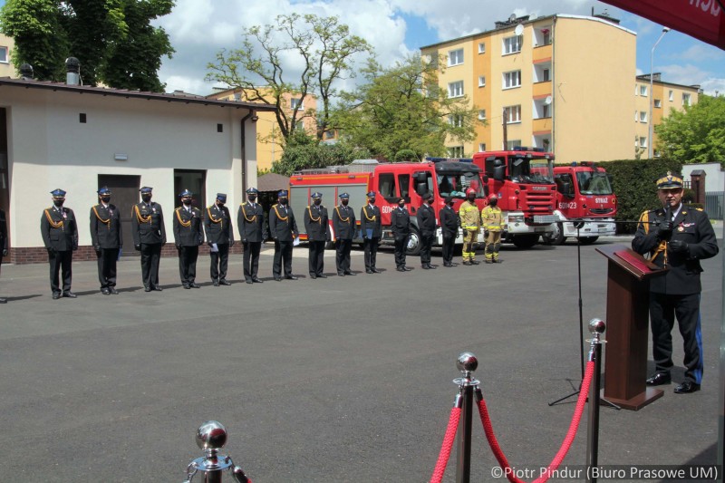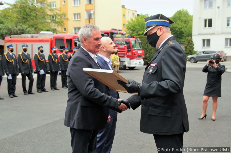 W bieżącym roku uroczyste obchody Strażackiego Święta, były świetną okazją do podziękowania za udzieloną pomoc w sfinansowaniu samochodu z drabiną mechaniczną Iveco Magirus SD-42, samochodu kwatermistrzowskiego SLKw Ford Transit oraz wsparcie realizacji zadań inwestycyjnych w zakresie termomodernizacji budynków Komendy oraz remontu placu wewnętrznego.