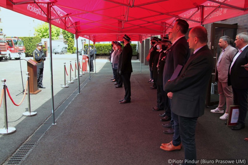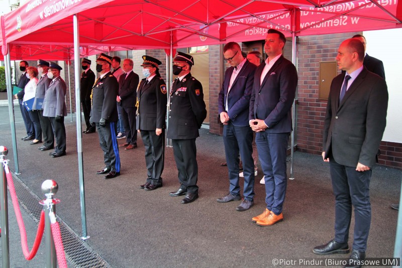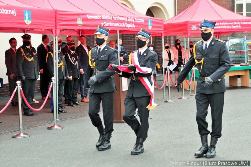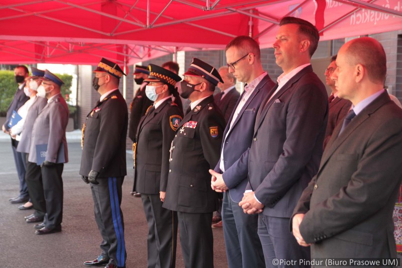 W uroczystości udział wzięli m.in.: Śląski Komendant Wojewódzki PSP – nadbryg. Jacek Kleszczewski, Pełnomocnik Marszałka Województwa Śląskiego ds. współpracy z administracją publiczną – Pani Danuta Sobczyk, Prezes WIOŚiGW w Katowicach – Pan Tomasz Bednarek, Prezydent Miasta Siemianowice Śląskie – Pan Rafał Piech, Przewodniczący Rady Miasta Siemianowice Śląskie – Pan Adam Cebula, Sekretarz Miasta – Pan Adam Skowronek, przedstawiciele Ochotniczej Straży Pożarnej oraz przedstawiciele służb mundurowych.