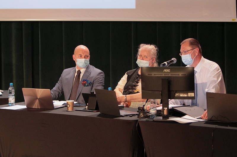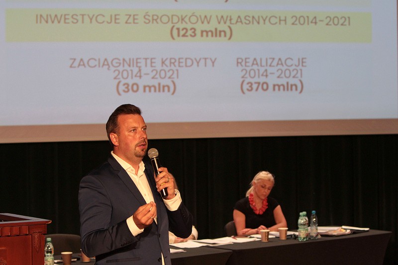 Czerwcowe obrady po raz pierwszy w tym roku zostały przeprowadzone w formie stacjonarnej i odbyły się w Parku Tradycji. Po zmianie i uzupełnieniu ich porządku oraz zatwierdzeniu protokołu z poprzedniej sesji, prezydent Rafał Piech przedstawił informację z okresu międzysesyjnego. Na początku podał liczbę przeprowadzonych szczepień w naszym mieście informując, że pierwszą dawką zostało zaszczepionych 69 tys. 270 osób, a drugą 28 tys. 18 osób. Oprócz tego prezydent wspomniał m. in. o pozyskanym dofinansowaniu na inwestycje drogowe, podpisaniu umów na budowę Parku Leśnego wraz ze ścieżką rekreacyjną na terenie przy Alei Młodych i termomodernizację budynku ZSTiO Meritum, a także o trwających pracach dociepleniowych na budynku Zespołu Szkół Sportowych i prowadzonej modernizacji kanalizacji deszczowej.
