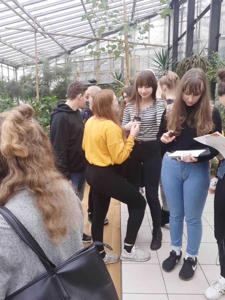 Uczniowie Śniadeka w trakcie zajęć w gliwickiej Palmiarni