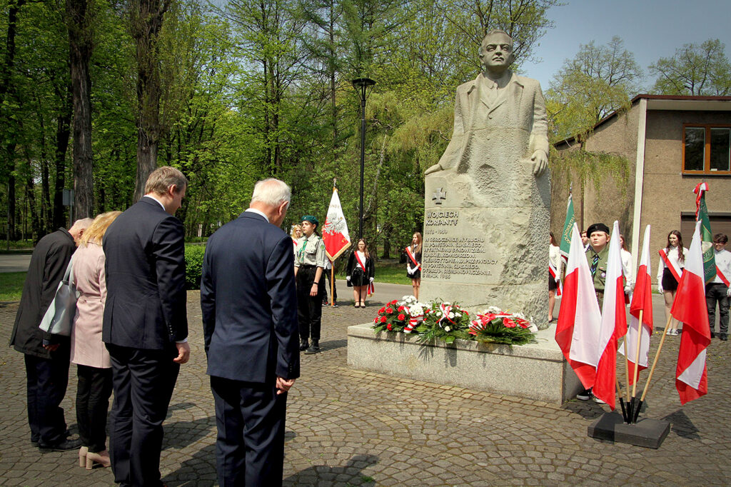Ostatnim elementem dzisiejszych obchodów Święta 3 Maja w naszym mieście było złożenie kwiatów pod pomnikiem Wojciecha Korfantego przy Urzędzie Stanu Cywilnego. Przypomnijmy – to właśnie dzisiaj obchodzimy 101. rocznicę wybuchu III Powstania Śląskiego a Wojciech Korfanty był jedną z najważniejszych postaci Śląska i jego walki o przyłączenie do Polski.