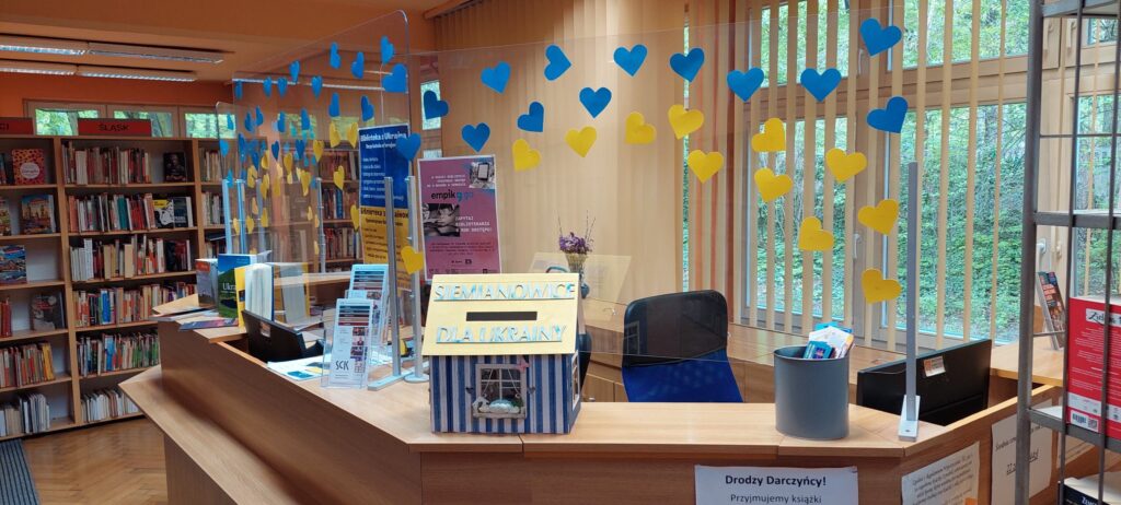 Dodatkowo przez cały Ogólnopolski Tydzień Bibliotek, który trwa do soboty, w Wypożyczalni Biblioteki Centralnej wystawiona jest skarbonka stowarzyszenia – Siemianowice dla Ukrainy. Dodatkowo w środę biblioteka zaprasza na dzień ukraiński, którego program znajdziecie tutaj: https://tiny.pl/9s22n