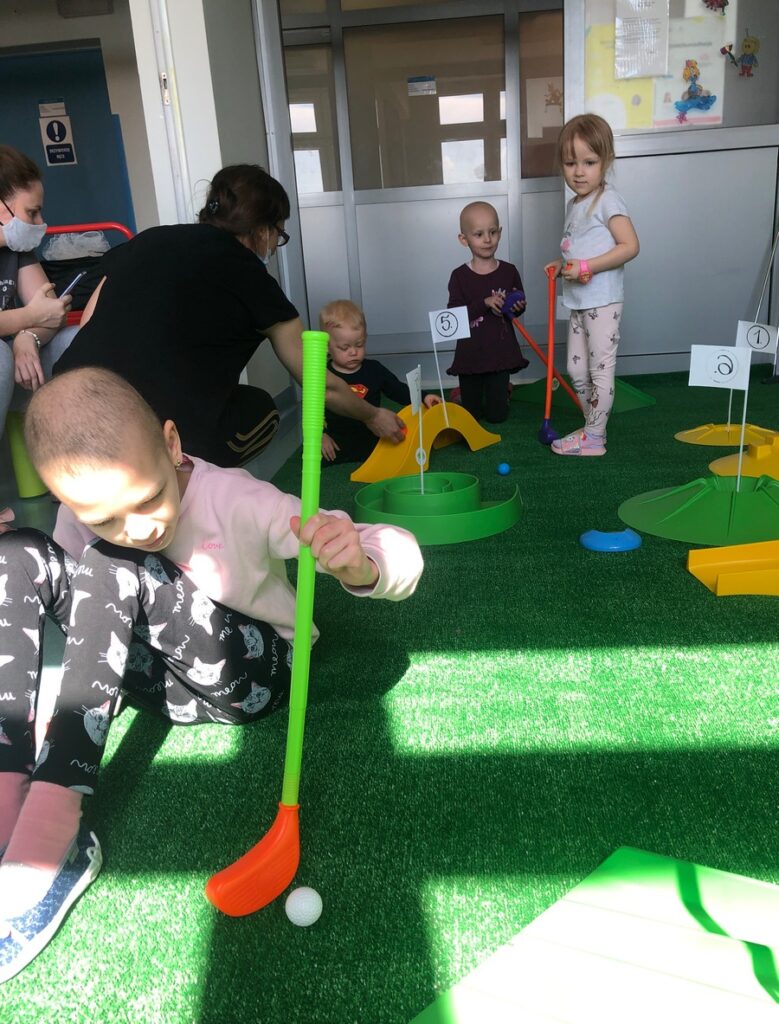 W ramach propagowania tej dyscypliny sportu oraz odczarowywania jej „elitarności”, zaprosiliśmy podopiecznych fundacji do wakacyjnej zabawy w mini golfa na dziecięcych oddziałach onkologicznych, którymi opiekujemy się na co dzień. Zabawa była znakomita (załączam zdjęcia). Trzymamy kciuki, aby jak wyzdrowieją i troszkę podrosną, mogli spróbować swych sił na niejednym golfowym polu!