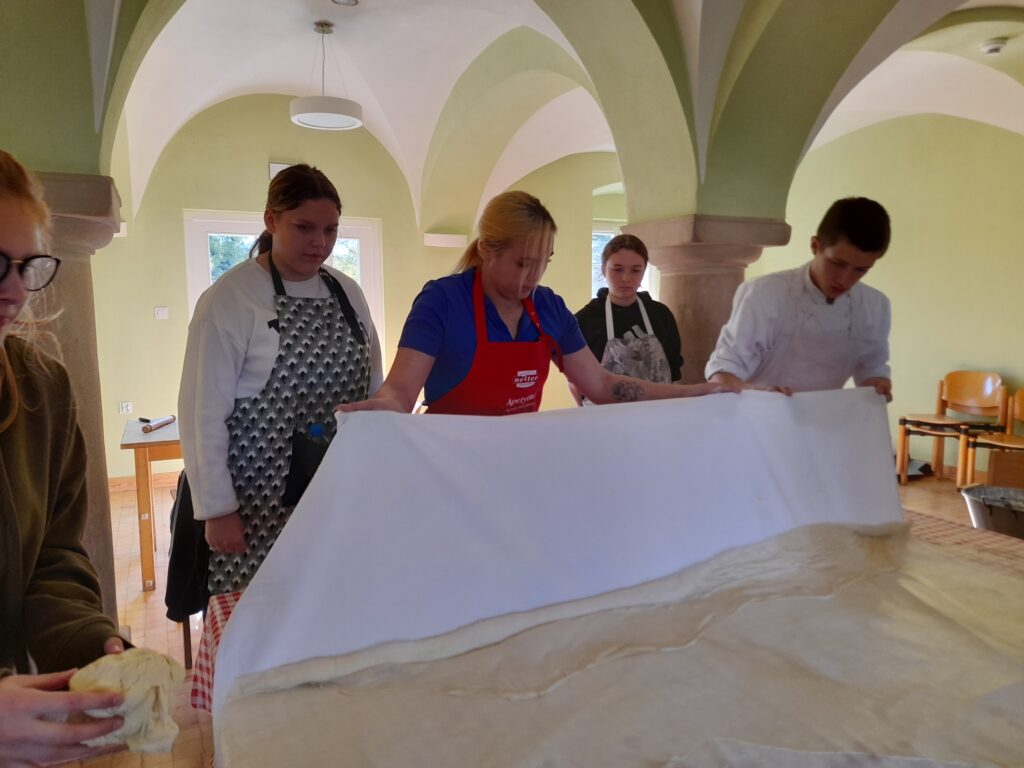 W dniach 16 – 21 października wychowankowie 12-1 Hufca Pracy Siemianowice Śląskie uczący się w Zespole Szkół Ogólnokształcących i Zawodowych w Siemianowicach Śląskich uczestniczyli w polsko – niemiecko – serbsko – chorwackim projekcie „What’s cooking?”, który odbył się na terenie Międzynarodowego Domu Spotkań Młodzieży w Krzyżowej. Do projektu zostaliśmy zaproszeni przez Kreisau-Initiative e.V z Berlina. Projekt „What’s cooking?” to wymiana fachowa na temat ekologicznej, zrównoważonej gastronomii. Uczestnicy podczas wspólnego gotowania oraz pieczenia poznawali kuchnię niemiecką, chorwacką i serbską. Mieli możliwość zaznajomienia się z procesem fermentacji podczas warsztatów z kiszenia i nabyć umiejętności ze sztuki dekoracji. Ponadto odbyły się warsztaty z kuchni meksykańskiej oraz piernikarskie. Uczestnicy projektu wzięli również udział w prelekcji poprzedzającej warsztaty. Prelekcja wprowadziła uczestników w tematykę projektową oraz zwróciła uwagę na globalny problem, jakim jest marnowanie żywności. W trakcie projektu odbyła się wycieczka do Wrocławia, większość młodzieży po raz pierwszy odwiedziła stolicę województwa dolnośląskiego. Zasmakowaliśmy oryginalnego dania we wrocławskiej restauracji z wegańską kuchnią fusion oraz spędziliśmy aktywnie czas na torach bowlingowych w Skay Towerze. W trakcie pobytu w Krzyżowej oprócz codziennych warsztatów, zabaw integracyjnych nie zabrakło również czasu na poznanie historii samej Krzyżowej. Na zakończenie projektu podczas ewaluacji zostały wręczone certyfikaty Youthpass. Spotkanie młodzieży zostało współfinansowane przez unijny program Erasmus+.