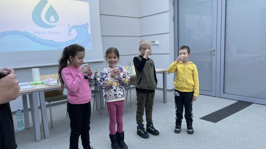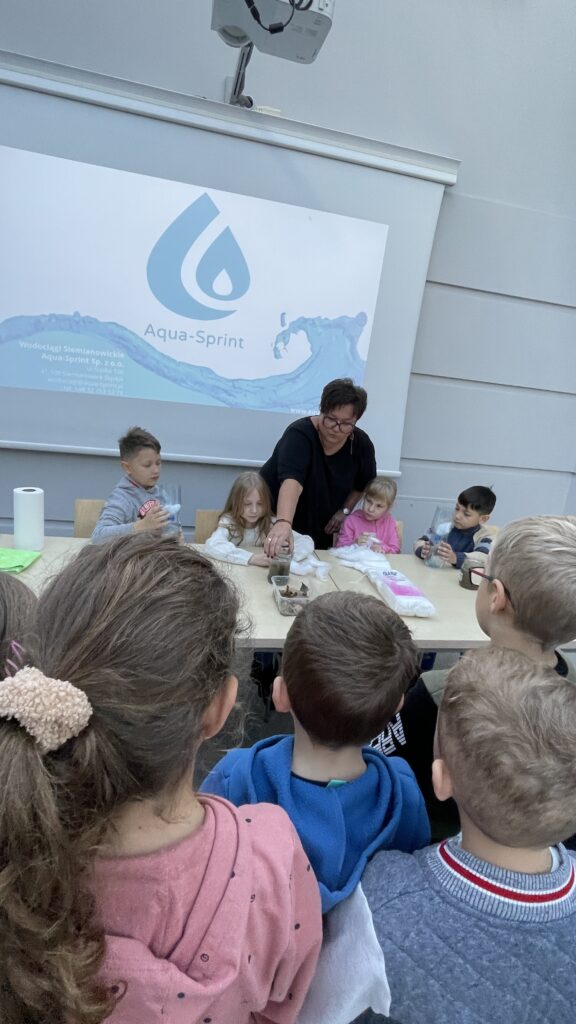 W dniach 21-22.11.2022r., odbyły się w siedzibie Wodociągów Siemianowickich Aqua-Sprint kolejne warsztaty w ramach projektu „Eko-przyjaciel kropli wody”. Tym razem, odwiedziły siedzibę Aqua-Sprint dzieci ze Szkoły Podstawowej nr 1 – klasa II B oraz ze Szkoły Podstawowej nr 11 – klasa I A. Nauka połączona z zabawą daje świetne rezultaty. Dzieci wiele dowiedziały się o wodzie, jej znaczeniu dla ludzi, zwierząt i roślin oraz o sposobach jej oszczędzania, odzyskiwania i ponownego wykorzystywania.