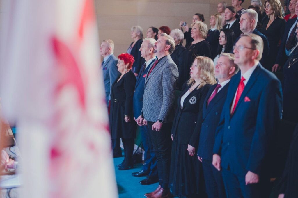 Uroczystość rozpoczęła się cudownym występem uczniów I Liceum Ogólnokształcącego im. Jana Śniadeckiego, pod kierownictwem wybitnego nauczyciela tejże szkoły kol. Sabiny Szkaradek.