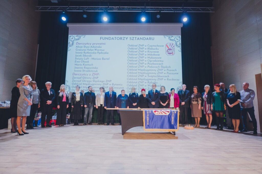 Najważniejszą częścią uroczystości stanowił ceremoniał nadania sztandaru Oddziałowi ZNP w Siemianowicach Śląskich. Od grudnia zeszłego roku rozpoczęto szereg działań zmierzających do pozyskania nowego sztandaru w miejsce starego, nie nadającego się już do prezentacji, który z dumą został przekazany do Muzeum Miejskiego, pod opiekę Dyrektora Pana Wojciecha Grzyba. Nowy sztandar uroczyście został przekazany przez kol. Sławomira Broniarza – Prezes Oddziału kol. Alicji Stysz-Adamskiej, w asyście kol. Grażyny Hołyś-Warmuz i kol. Iwony Rutkowskiej-Pędzijskiej. Nie obyło się bez wbicia gwoździ fundacyjnych oraz wręczenia podziękowań licznym fundatorom sztandaru: Zarządowi Głównemu ZNP, Okręgowi Śląskiemu ZNP, Oddziałowi Międzygminnemu ZNP w Bytomiu, Oddziałowi Międzygminnemu ZNP w Cieszynie, Oddziałowi ZNP w Chorzowie, Oddziałowi ZNP w Częstochowie, Oddziałowi ZNP w Kłobucku, Oddziałowi ZNP w Knurowie, Oddziałowi ZNP w Mikołowie, Oddziałowi ZNP w Mykanowie, Oddziałowi ZNP w Ogrodzieńcu, Oddziałowi ZNP w Pawłowicach, Oddziałowi ZNP w Piekarach Śląskich, Oddziałowi Międzygminnemu ZNP w Psarach, Oddziałowi Międzygminnemu ZNP w Pszczynie, Oddziałowi ZNP w Świętochłowicach, Oddziałowi Międzygminnemu ZNP w Raciborzu, Oddziałowi ZNP w Rybniku, Oddziałowi ZNP w Woźnikach, Oddziałowi ZNP w Zabrzu, Oddziałowi ZNP w Zawierciu, Alicji Stysz-Adamskiej, Grażynie Hołyś-Warmuz, Iwonie Rutkowskiej-Pędzijskiej, firmie Świyży Luft- Mariuszowi Bartel, Beacie Cofor, Joannie Rogozińskiej, Iwonie Strzebińczyk, Ewie Olszok Marii Kańtoch i Jackowi Sikorskiemu.