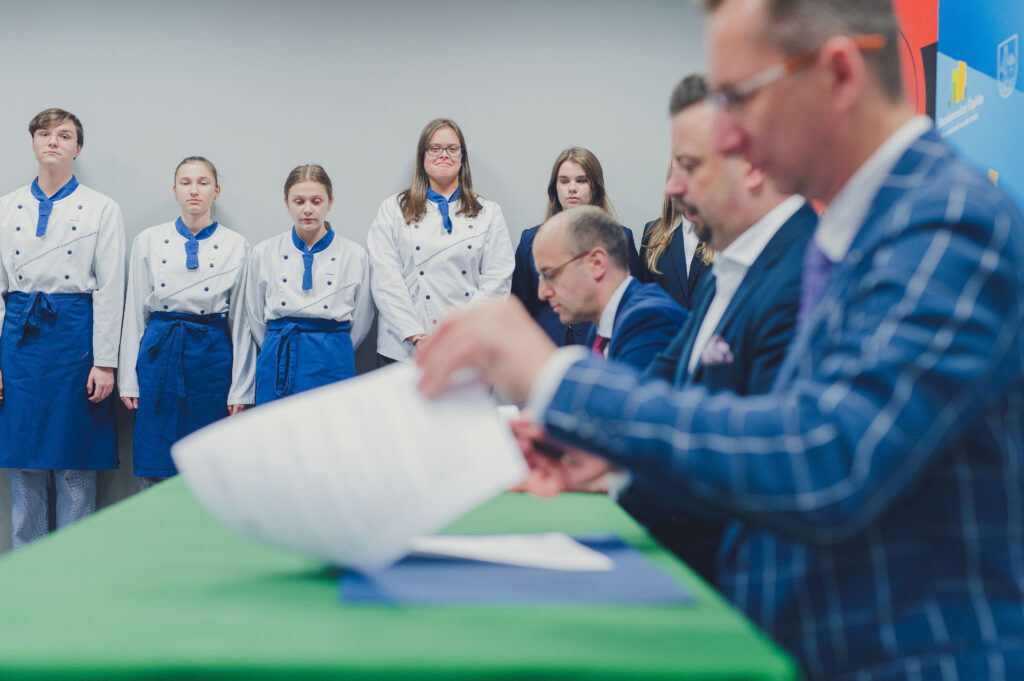 Podpisanie umowy odbyło się w obecności przedstawicieli klas wielu zawodów, które odbywają zajęcia u w/w przedsiębiorców. Szczególnie ważnym akcentem podpisania były słowa skierowane do zebranych gości przez naczelnik Wydziału Edukacji Annę Sobieraj, dotyczące istoty kształcenia zawodowego w odniesieniu do możliwości przekazywania wiedzy i umiejętności przez pracodawców.