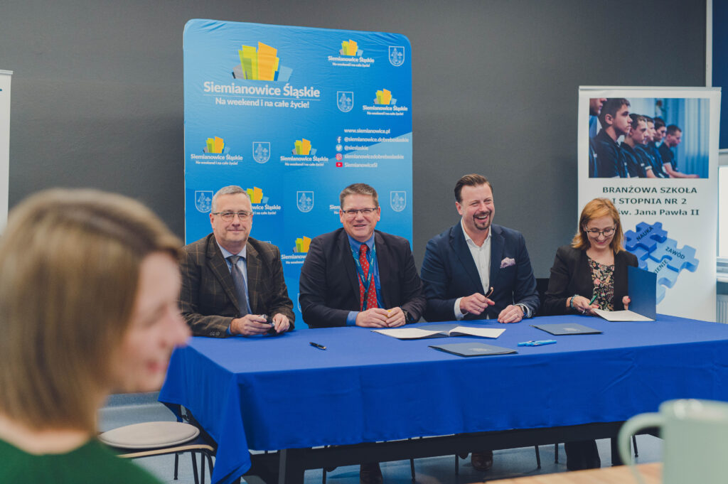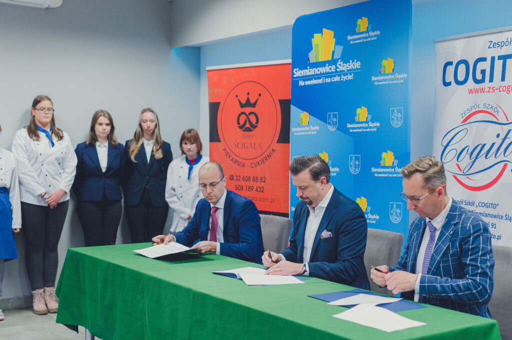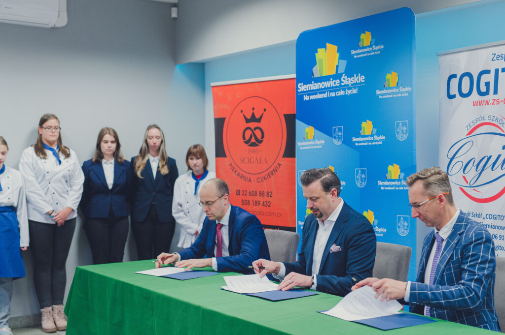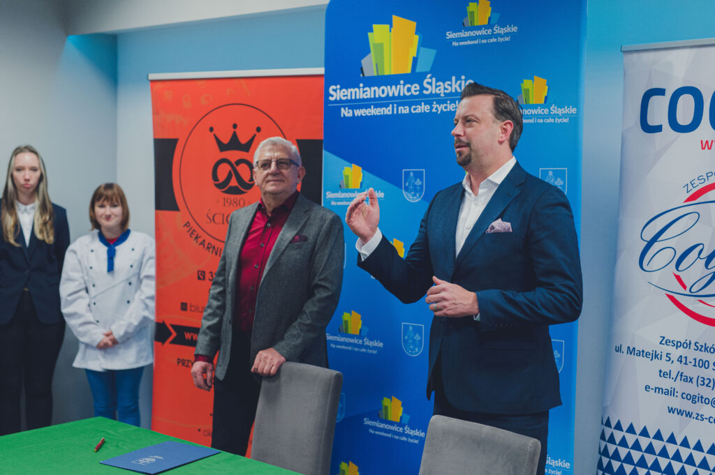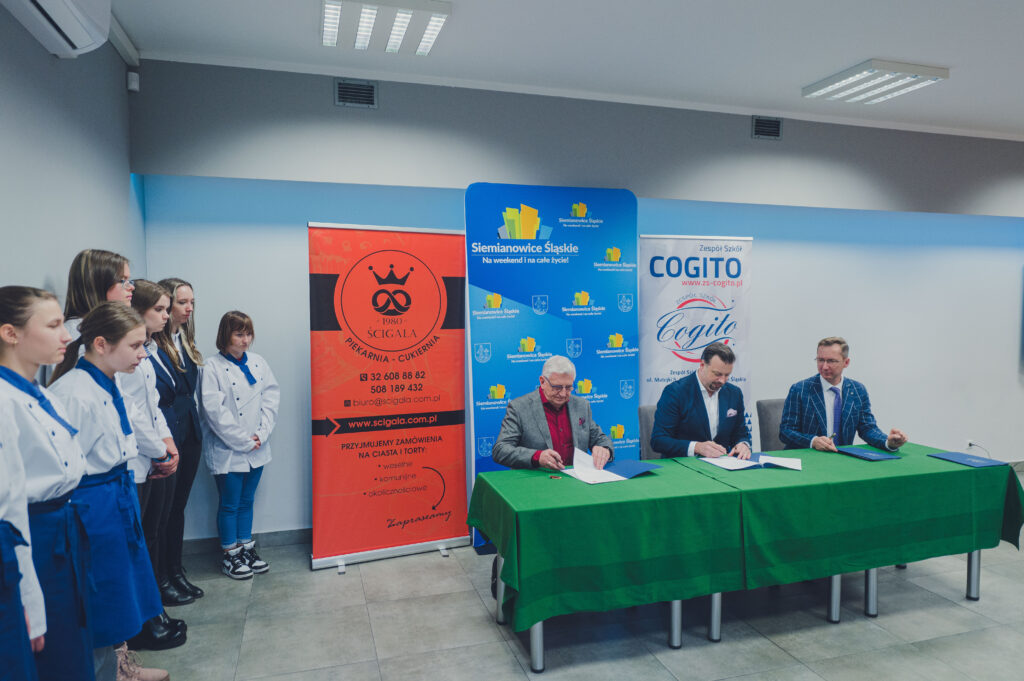 W poniedziałek, 28 listopada 2022 roku, dwie siemianowickie szkoły branżowe: Zespół Szkół COGITO oraz Zespół Szkół Ogólnokształcących i Zawodowych, podpisały umowy patronackie na podstawie których trzy firmy oraz sieć hoteli Diament obejmą swoim patronatem uczniów klas zawodowych obu szkół.