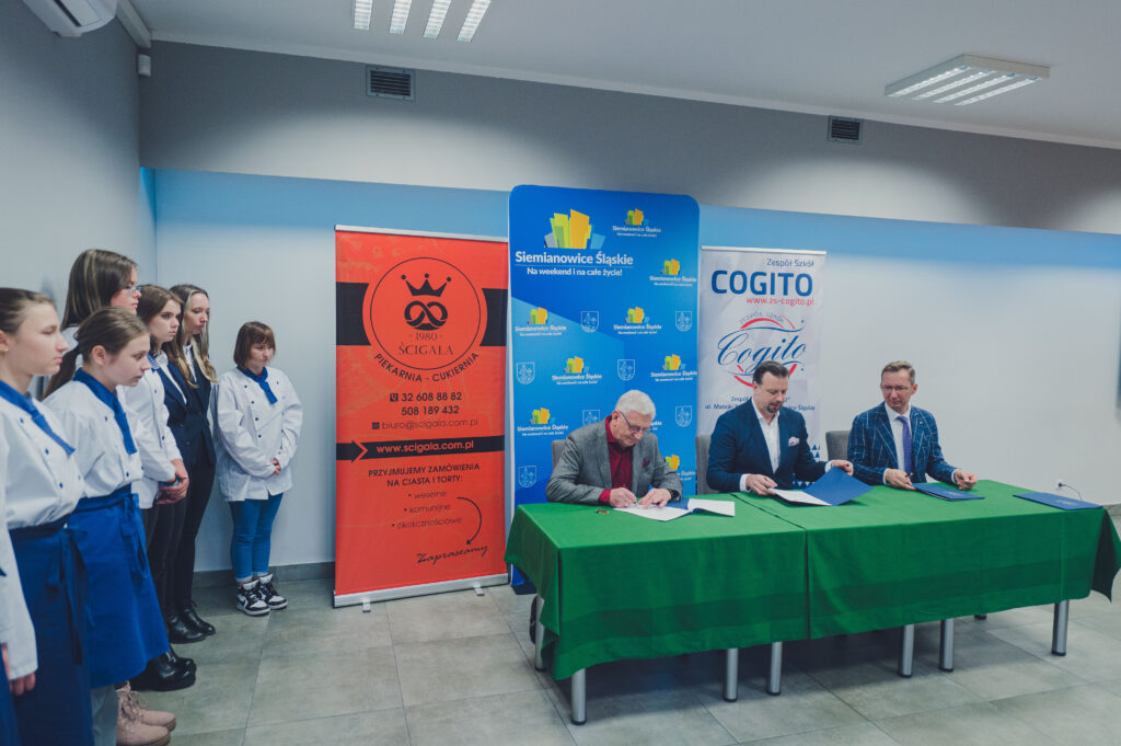 Warto nadmienić, że zacieśnienie współpracy to przysłowiowa „wisienka na torcie”, ponieważ wszyscy w naszym mieście dobrze znamy markę Hoteli Diament i Zakładu Piekarniczo-Cukierniczego Andrzeja Ścigały, a młodzież Zespołu Szkół COGITO odbywa w nich praktyki od wielu już lat.