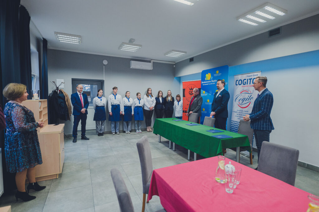 – To ważne wydarzenie wnosi wiele korzyści w rozwój oraz stabilność edukacji zawodowej w naszej szkole – powiedział dyrektor Zespołu Szkół COGITO. – Zarówno obecni, jak i przyszli uczniowie będą mieli możliwość współpracy z pracodawcami, których pozycja na rynku jest stabilna, a marka wspomnianych przedsiębiorców powszechnie znana. Zacieśnianie współpracy szkoły z tak znakomitymi przedsiębiorcami daje gwarancję realizacji praktyk zawodowych na wysokim poziomie, zgodnych ze standardami w branży oraz obcowania z nowinkami zawodowymi – dodał dyrektor Królikowski. jak zapewniali przedstawiciele firm, ich nadrzędnym zadaniem jest przygotowanie warsztatu zawodowego młodego człowieka do samodzielnej, odpowiedzialnej, a przede wszystkim wysokiej jakościowo pracy.