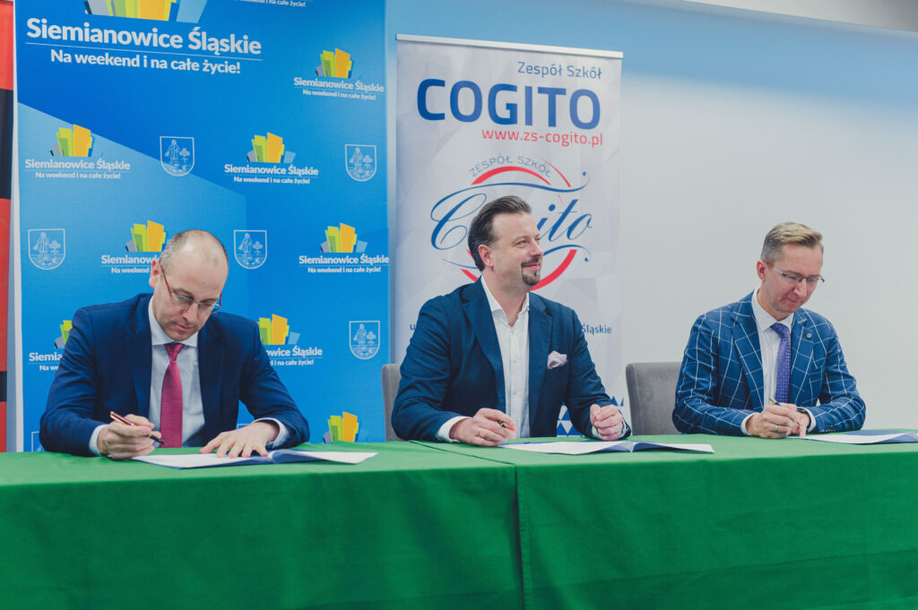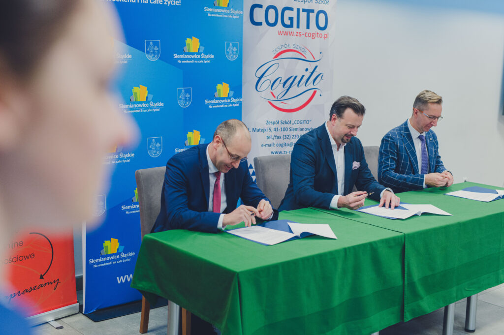 W samo południe umowy patronackie podpisano w Zespole Szkół COGITO. Pierwszą z nich była umowa pomiędzy Urzędem Miasta Siemianowice Śląskie, reprezentowanym przez prezydenta miasta Rafała Piecha, Siecią Hoteli Diament, reprezentowaną przez Dyrektora Hotelu Vacanza Miłosława Kryka oraz Zespołem Szkół COGITO, reprezentowanym przez dyrektora szkoły Damiana Królikowskiego, drugą natomiast była umowa patronacka pomiędzy Urzędem Miasta Siemianowice Śląskie reprezentowanym przez Prezydenta Miasta, Zakładem Piekarniczo-Cukierniczym reprezentowanym przez Andrzeja Ścigałę oraz Zespołem Szkół COGITO reprezentowanym przez dyrektora szkoły Damiana Królikowskiego.