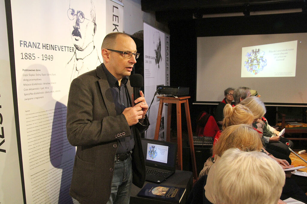 Gości przywitał również Wojciech Grzyb – dyrektor Muzeum Miejskiego w Siemianowicach Śląskich. Opowieść historią podszytą pt. „Śląski Arystokrata niejednym językiem mówił” przedstawił Arkadiusz Kuzio-Podrucki, historyk, dr nauk humanistycznych, publicysta, badacza dziejów rodów śląskiej arystokracji i szlachty, pracownik Instytutu Badań Regionalnych Biblioteki Ślaskiej.