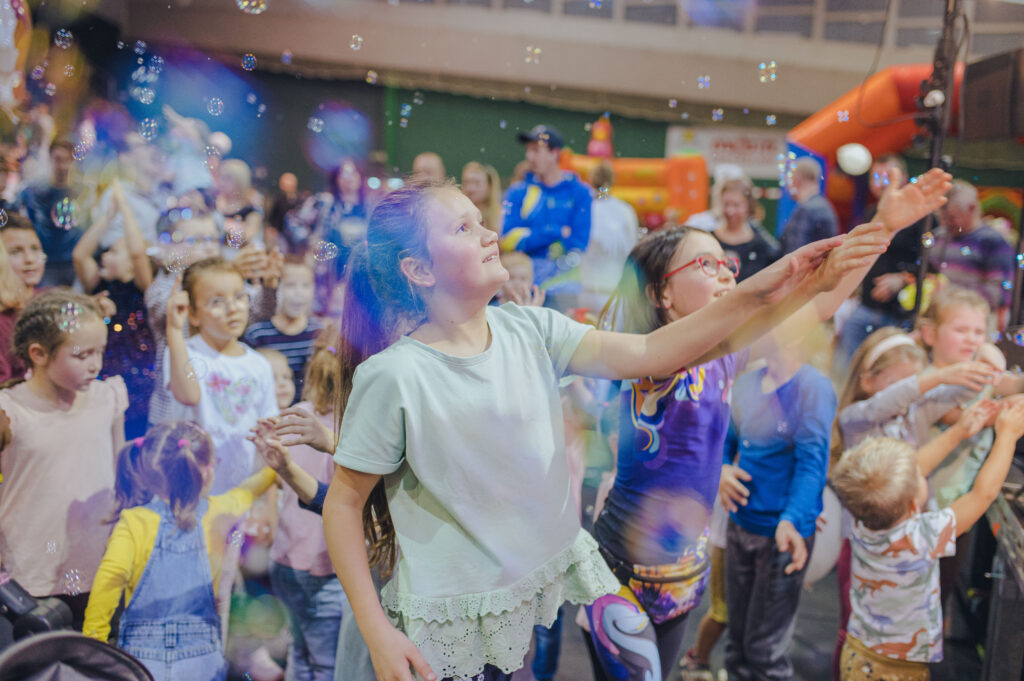 Tam, gdzie panuje dobro musi być oczywiście uśmiech i radość. W hali „Michała” zapewniły je najmłodszym dmuchańce i zabawa z didżejem, okraszona licznymi, wesołymi konkursami. Nie zabrakło balonów, fotobudki, słodyczy i popcornu. A skoro to niebiańska zabawa, to nie obyło się bez cukrowych obłoczków, bez aniołkowego malowania buziek, czy wplatania warkoczyków. Znakomicie, jak zresztą zwykle, spisał się DJ Kris, który zawsze potrafi zaproponować dzieciakom pochłaniające je zabawy i jest istnym gejzerem humoru.