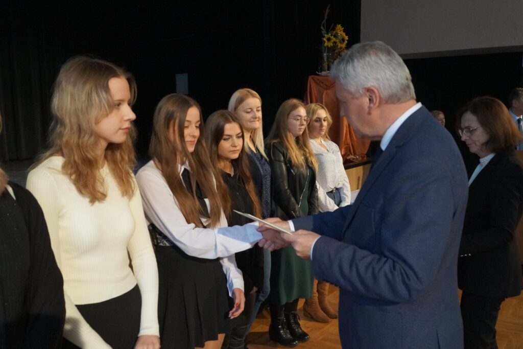 Stypendia zostały przyznane zarówno uczniom szkół średnich po szkole podstawowej jak i uczniom szkół progimnazjalnych. Uroczystego wręczenia dyplomów dokonali Wicekurator Kuratorium Oświaty w Katowicach Pan mgr Dariusz Domański oraz Dyrektor Delegatury w Bytomiu Pani mgr Bożena Szarama. Wzniosłe chwile, piękne przemówienia uzupełnione zostały programem artystycznym przygotowanym przez młodzież z MDK w Chorzowie.