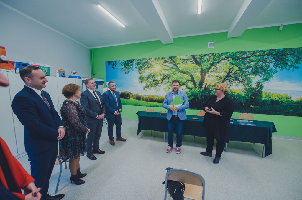 Po oficjalnej części przedstawiciele Fundacji i przedsiębiorstwa Leroy Merlin zwiedzili szkołę. Otwarcie wyremontowanej pracowni planowane jest wiosna 2023 roku.