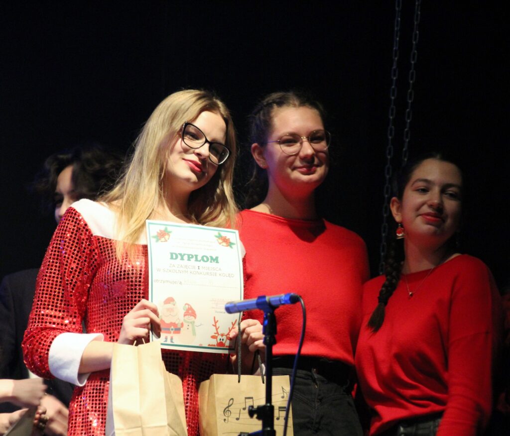 A potem scenę przejęli szturmem wszyscy, którzy skorzystali z okazji i wzięli udział w zorganizowanym przez szkolne filolożki języków obcych I Konkursie Obcojęzycznej Piosenki Świątecznej. Tym samym otworzyły nowy rozdział w zakładce szkolnych konkursów – że na jednym się nie skończy, to już wiemy na pewno, bo ilość dobrej energii, jaka popłynęła ze sceny tego dnia, była tak potężna, że mogłaby zasilić niejedną elektrownię w czasach kryzysu.