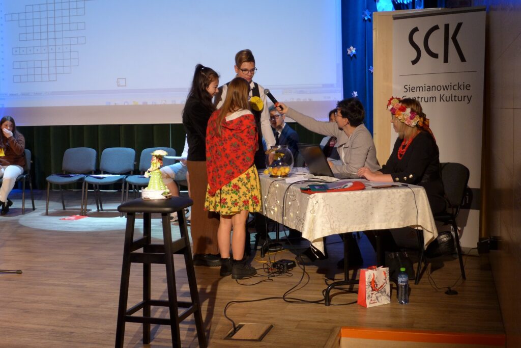 Uczniowie wykazali się nie tylko świetną znajomością naszego dialektu, lecz również bogatą wiedzą dotyczącą tradycji Górnego Śląska. Wielu emocji dostarczyły nam takie konkurencje, jak: „Bank słówek z kołem fortuny” (przygotowana przez p. Monikę Bodzek), czy „Ślonski krojcok – krzyżówka” (przygotowana przez p. Małgorzatę Brożynę). Uczniowie pokazali dusze prawdziwych artystów i smykałkę komików w kreacji scenek rodzajowych („U nos w doma na Wilijo”- konkurencja p. Moniki Bodzek) ukazujących śląskie tradycje bożonarodzeniowe. Szczególnie karkołomna okazała się konkurencja polegająca na odśpiewaniu gwarowych parafraz kolęd („Przyśpiywki – z ichniego na nasze”- konkurencja p. Aleksandry Niedźwiedź-Stawarz).