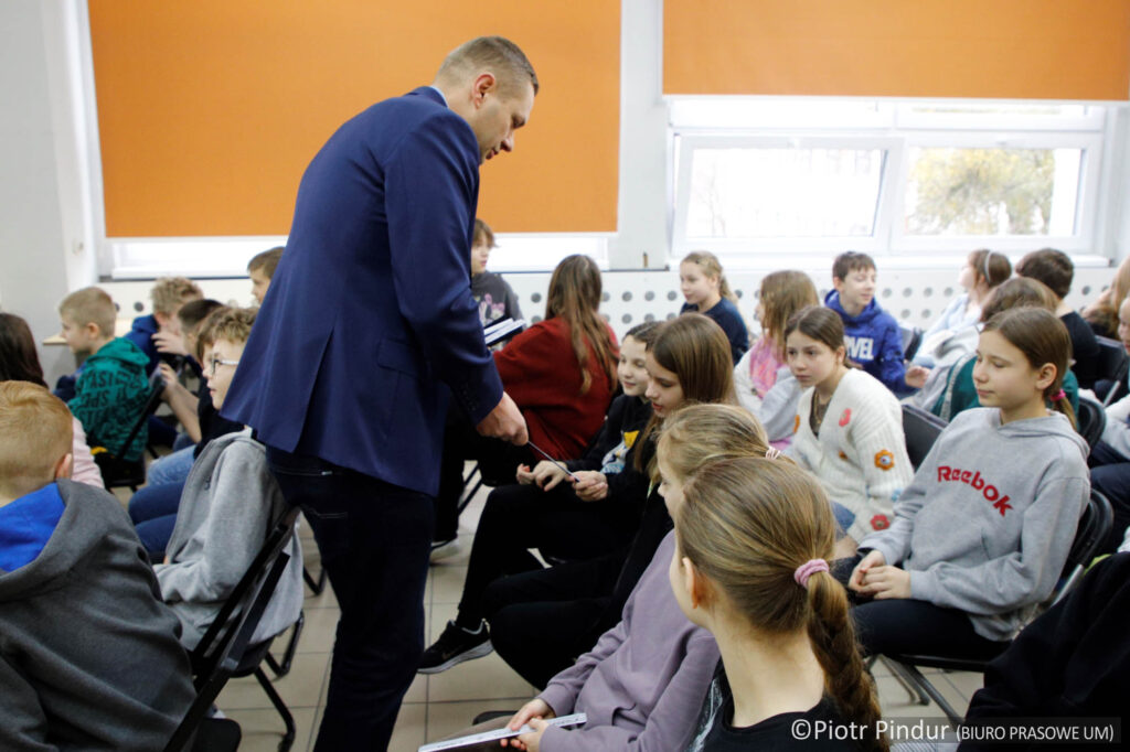 Podczas spotkania wszyscy uczniowie otrzymali samozaciskowe opaski odblaskowe, które ufundowane zostały przez siemianowicką firmę MMJ, której prezes – Michał Janos, jest także pomysłodawcą i inicjatorem całej akcji.