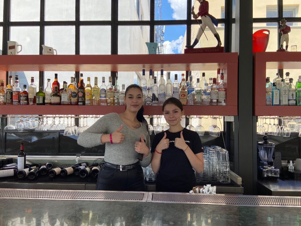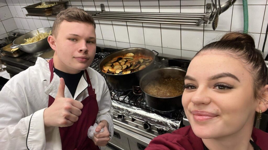 W pierwszych dniach nasi praktykanci zmierzyli się z wieloma zadaniami. Grupa technika żywienia i usług gastronomicznych przygotowywała potrawy i napoje greckie, obsługiwała gości restauracji i pracowała na stanowisku barmańskim. Uczniowie z kierunku technika reklamy poszerzali swoją wiedzę i umiejętności w zakresie ofert sprzedażowych, usług reklamowych oraz projektowali logotypy wybranych produktów.