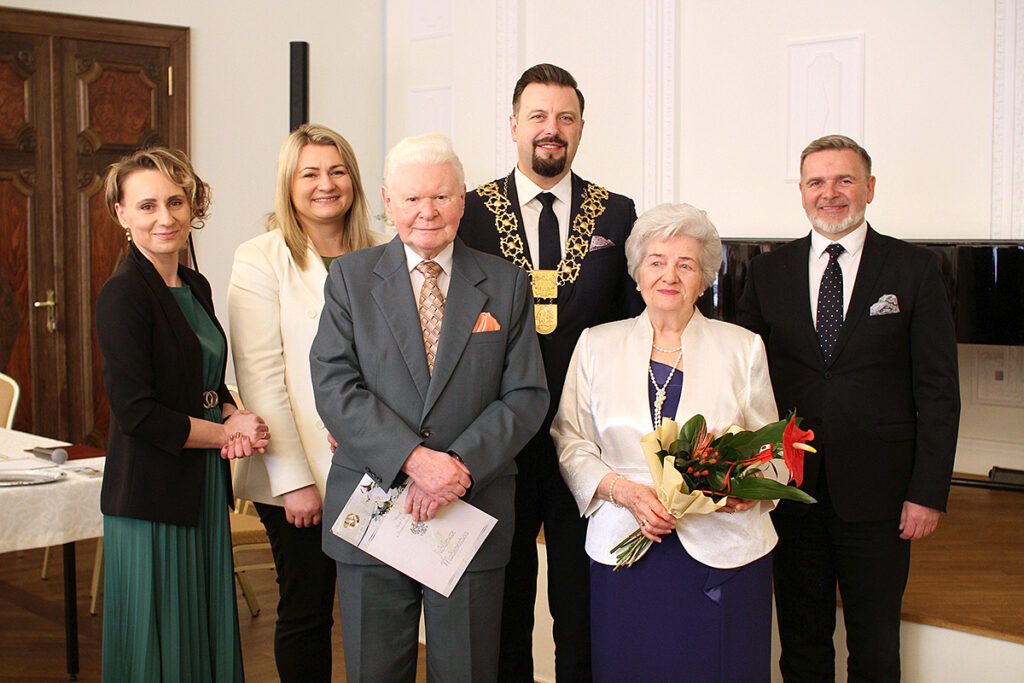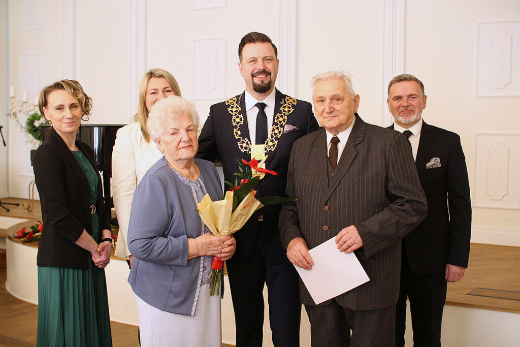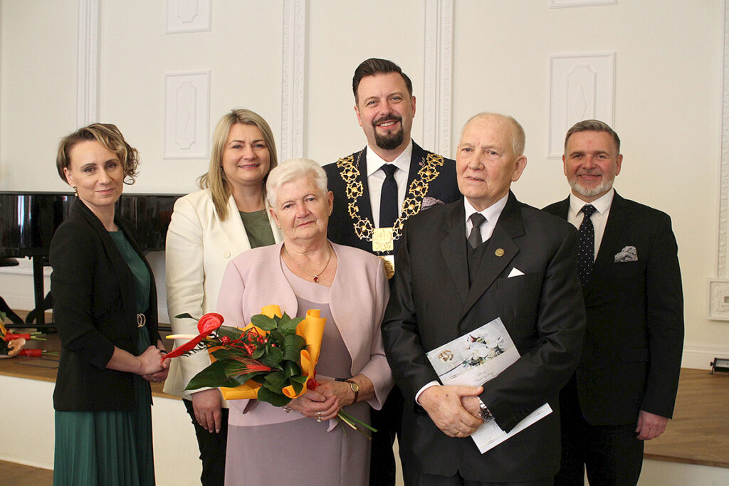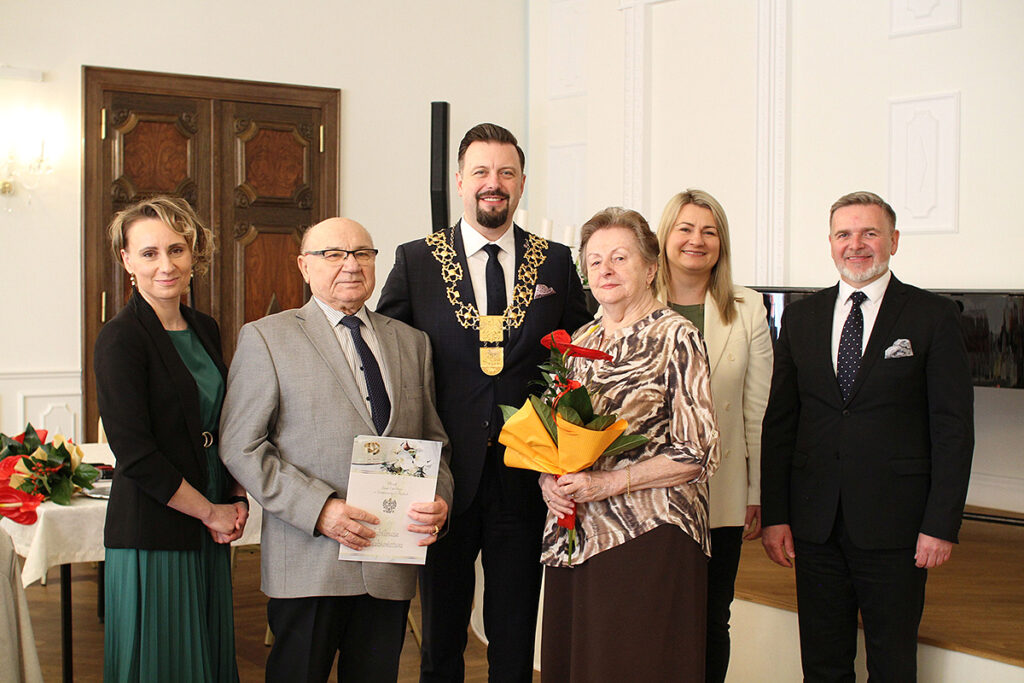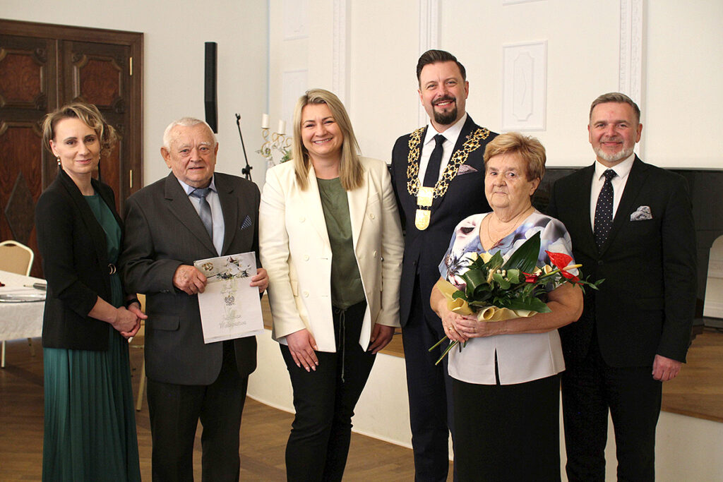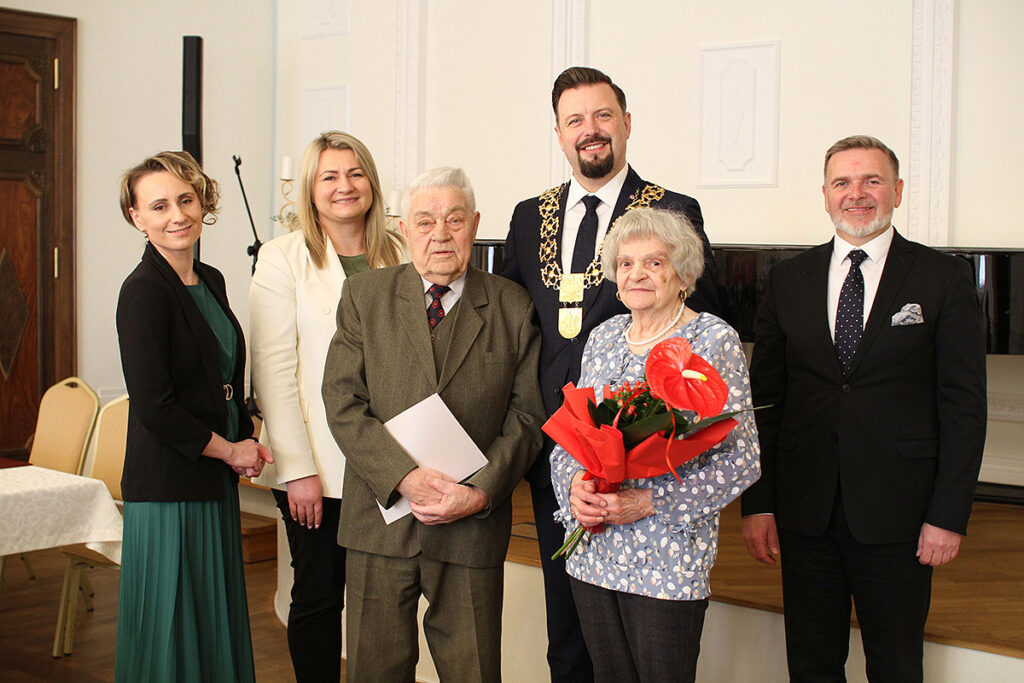 Dzisiaj bowiem dostojni jubilaci świętowali swoją długoletnią, wspólną życiową drogę. Z tej okazji Rafał Piech, Prezydent Miasta Siemianowice Śląskie wręczył małżonkom Medale Dwóch Róż, przyznawane przez Prezydenta RP. W uroczystości uczestniczyli również: Beata Gałecka, Druga Zastępca Prezydenta Miasta Siemianowice Śląskie oraz Adam Skowronek, Sekretarz Miasta Siemianowice Śląskie.
