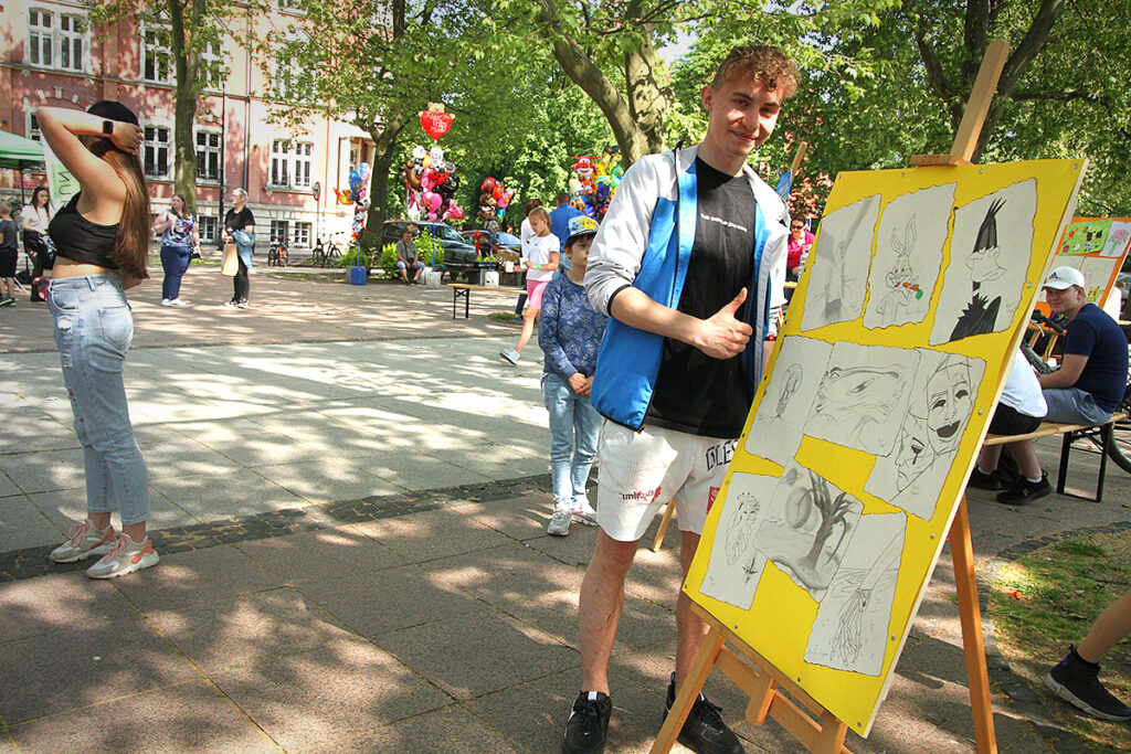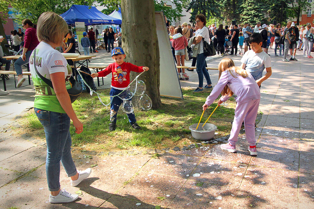 Nie mogło być inaczej, skoro na najmłodszych – prócz występów – czekały dmuchańce, wata cukrowa oraz popcorn, który zapewniła Fundacja Piastun. Do zabaw zaś zachęcały maskotki – policyjny Sznupek oraz strażniczka Tosia. Ci którzy chcieli na moment odpocząć od tańca i zabaw, mogli pooglądać grafiki i rysunki autorstwa podopiecznych OIK-u, MDK Jordan i Placówki Opiekuńczo-Wychowawczej oraz Zespołu Placówek Wsparcia Dziennego.