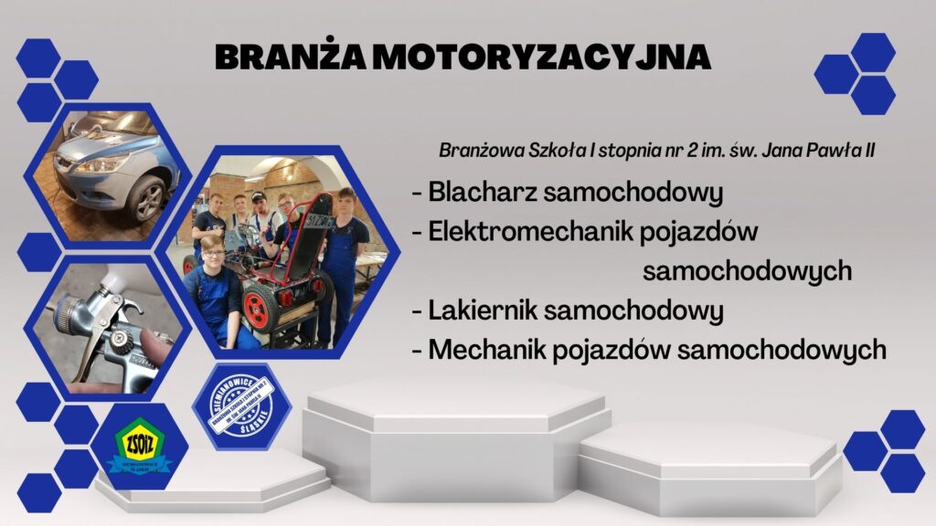 Jedną z najbardziej rozwijających się gałęzi gospodarki jest przemysł motoryzacyjny. Obecnie na rynku pracy jest duże zapotrzebowanie na specjalistów w zawodach z tej branży: mechanik pojazdów samochodowych, blacharz samochodowy, lakiernik samochodowy, elektromechanik pojazdów samochodowych. Dodatkowym atrybutem są dobre zarobki, możliwość ciągłego rozwoju i stały kontakt z ludźmi. Nauka w klasie wielozawodowej odbywa się w systemie kształcenia dualnego: zajęcia praktyczne bezpośrednio u pracodawcy w oparciu o umowę jako młodociany pracownik, zajęcia teoretyczne na turnusach kursów przedmiotów zawodowych a przedmioty ogólne w szkole.