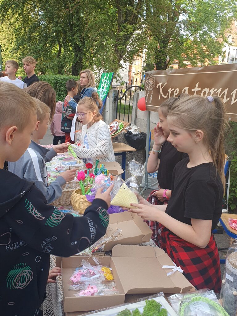 Wkrótce po tym na scenie mogliśmy podziwiać m.in. występy taneczne oraz wokalne naszych uczniów, a także koncert zaprzyjaźnionego z naszą szkołą zespołu muzycznego z II LO im. Jana Matejki. Na terenie boiska szkolnego stoisko Kreatorni prezentowało piękne rękodzieło uczniów oraz nauczycieli. Dużym zainteresowaniem cieszyły się również kąciki gier i zabaw, jak: Koło Fortuny, bańki mydlane, malowanie twarzy i zaplatanie warkoczyków, a także fotobudka, dzięki której można było wrócić do domu z pamiątkowym zdjęciem. Animatorzy z ZSTiO Meritum razem z Meritkiem wspierali organizację zabaw dla najmłodszych.