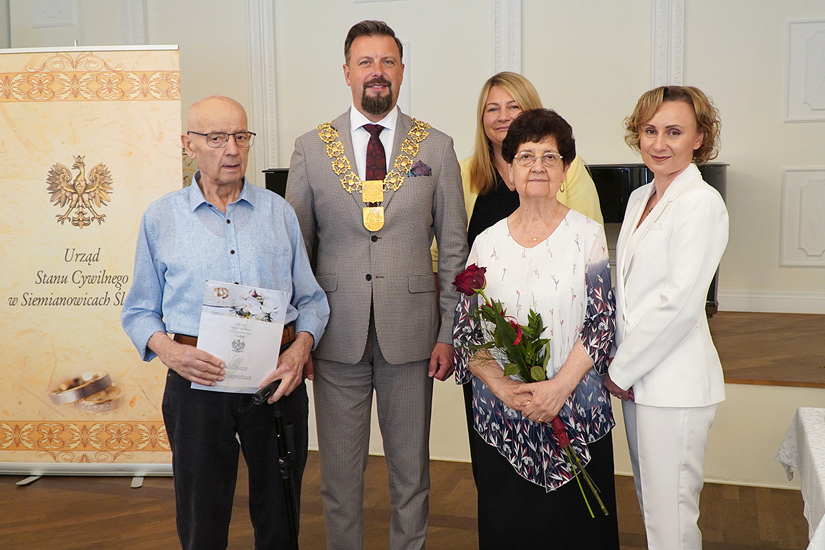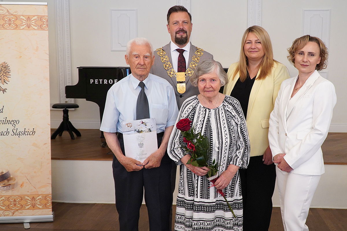 Słowami wiersza Bolesława Leśmiana, Magdalena Mietła, kierownik Urzędu Stanu Cywilnego w Siemianowicach Śląskich powitała jubilatów, którzy dzisiaj, 2 lipca br. świętowali Złote, Diamentowe oraz Żelazne Gody.