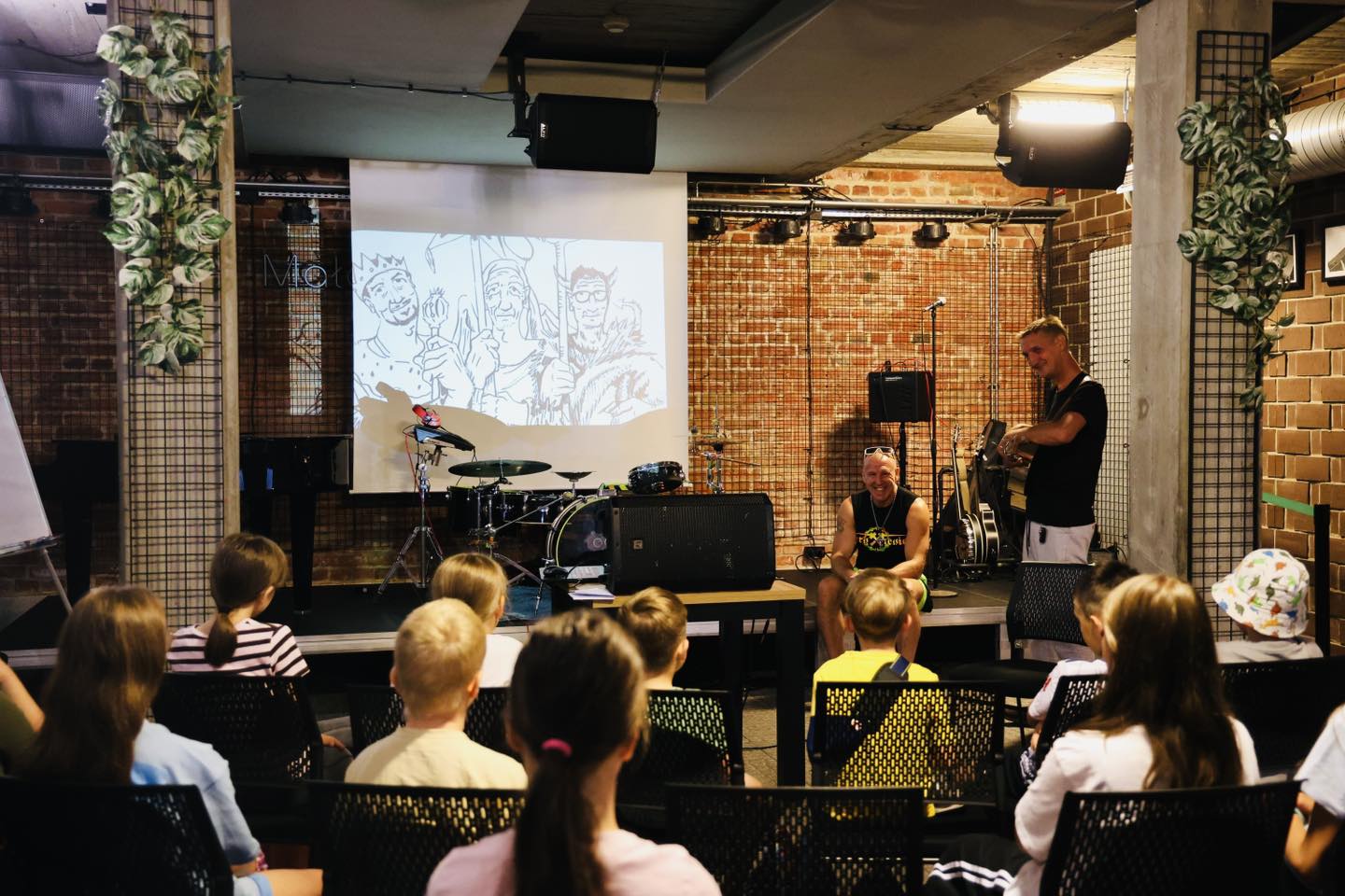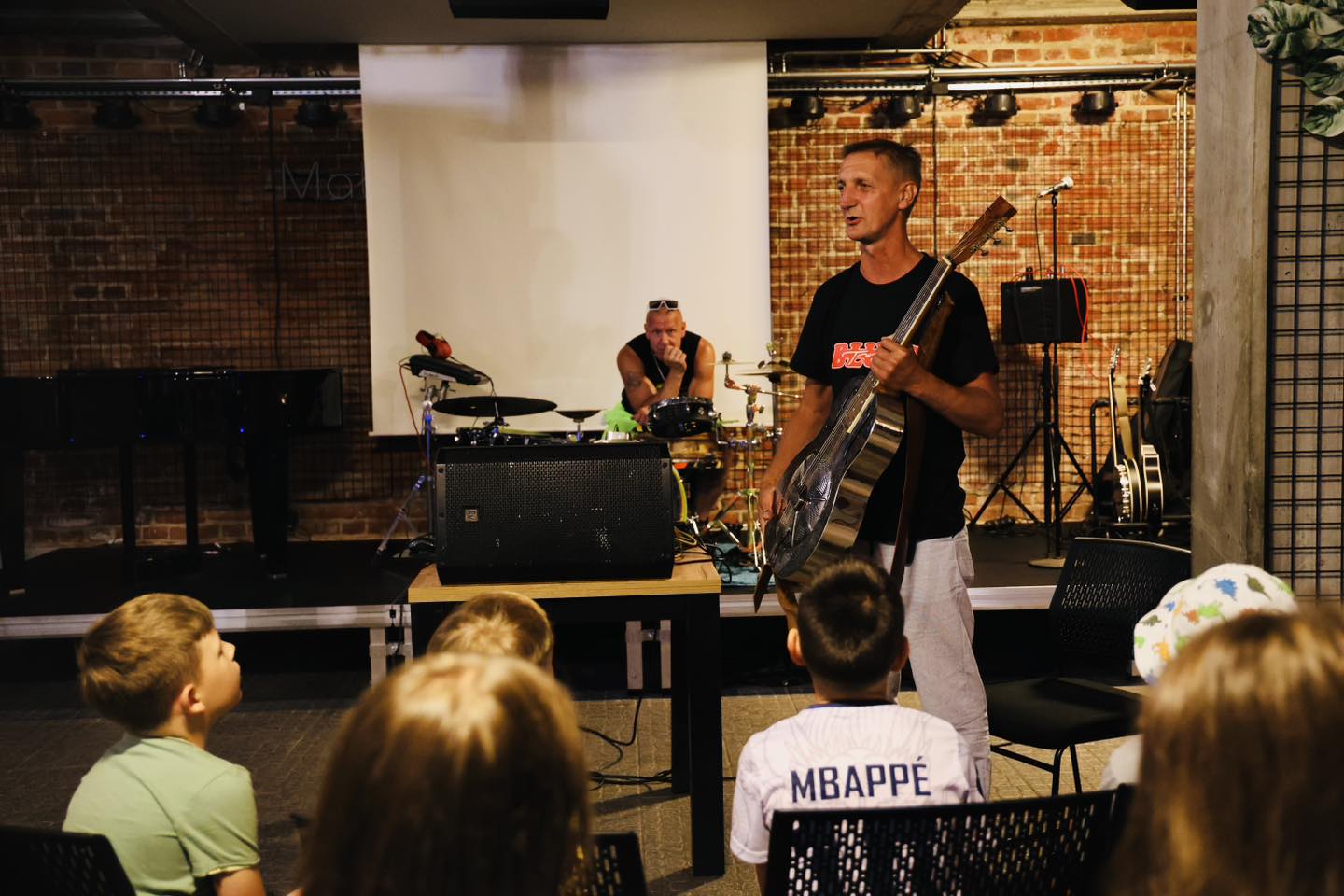 W środę dzieci przeniosły się w niezwykły, muzyczny świat, w którym tradycja spotyka się ze współczesnością! Podczas radosnych i pełnych energii warsztatów prowadzonych przez Marka „Makarona” Motykę oraz Marcela Różankę z zespołu Oberschlesien, najmłodsi poznawali śląskie rytmy, uczyli się nowych dźwięków i wspólnie tworzyli muzykę – wszystko w atmosferze zabawy i odkrywania piękna regionalnej kultury!