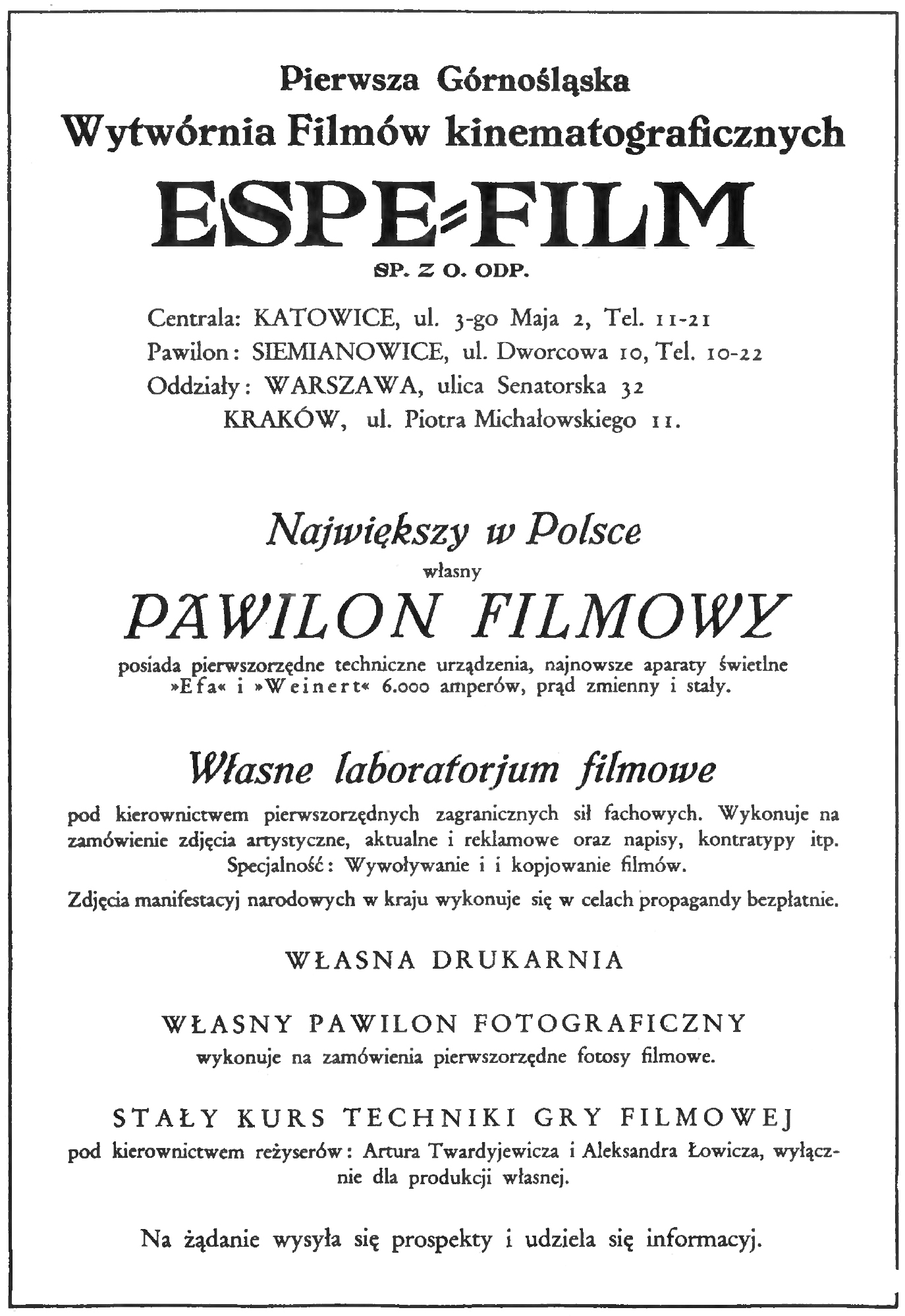 W 2025 roku mija równo sto lat od powstania zamysłu Wytwórni Filmów Espe-Film – pierwszego studia filmowego na Górnym Śląsku, założonego przez Stefana i Antoniego Pierzchalskich w Siemianowicach Śląskich. Z tej okazji firma Lokalne Dziedzictwo LH Marcin Wądołowski oraz Siemianowickie Centrum Kultury zapraszają na wyjątkową wystawę „Filmowa dusza miasta – zapomniane śląskie Hollywood”, poświęconą historii, ludziom i dziedzictwu tego niezwykłego przedsięwzięcia.