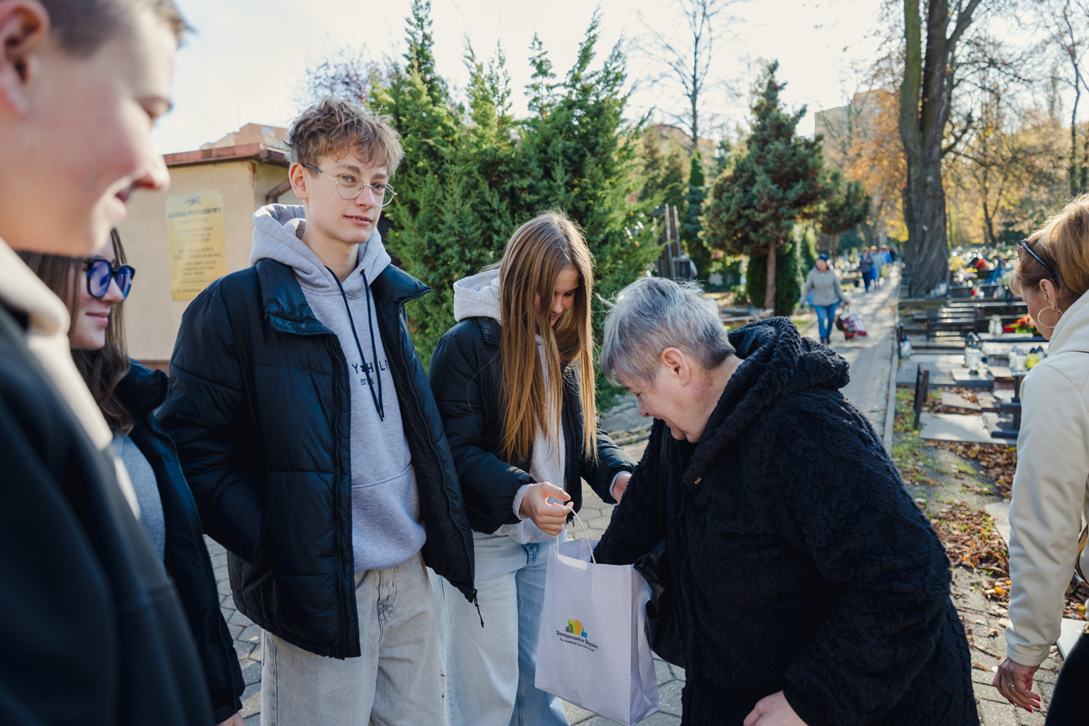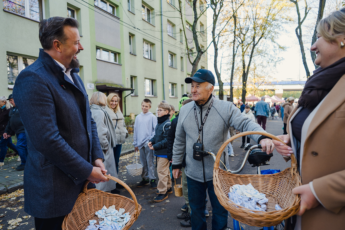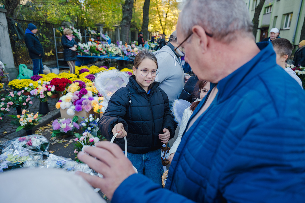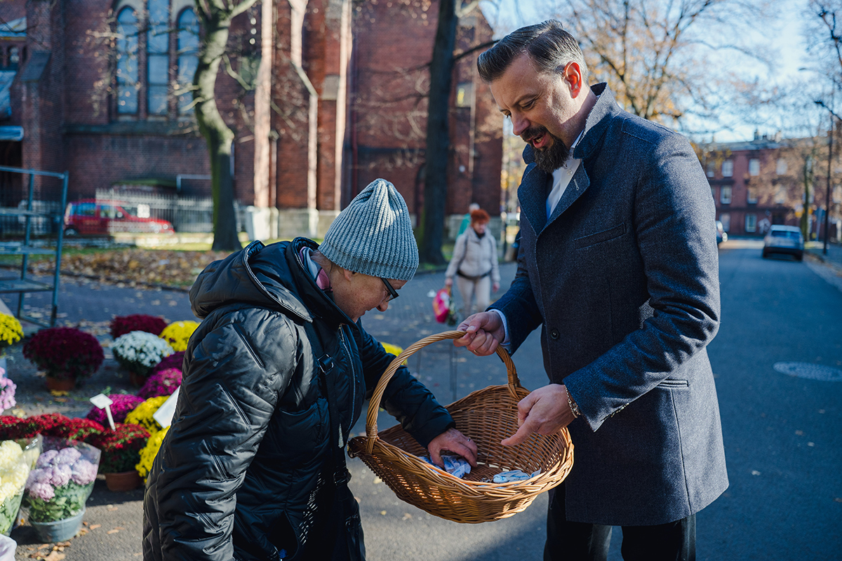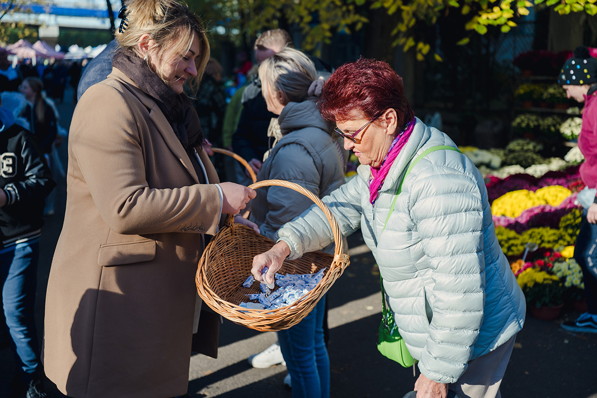 Najpierw, około godziny 10.00, uczniowie wspólnie z prezydentem i jego zastępcą częstowali – specjalnie na tę okazję przygotowanymi słodyczami – mieszkańców, którzy piątkowe przedpołudnie spędzali na zakupach na siemianowickim targowisku. Tam, wraz z cukierkami, można było otrzymać odblaskowe serduszko – a to, zwłaszcza w kontekście szybko zapadającego zmierzchu, jest niezwykle istotne z punktu widzenia bezpieczeństwa na drodze.