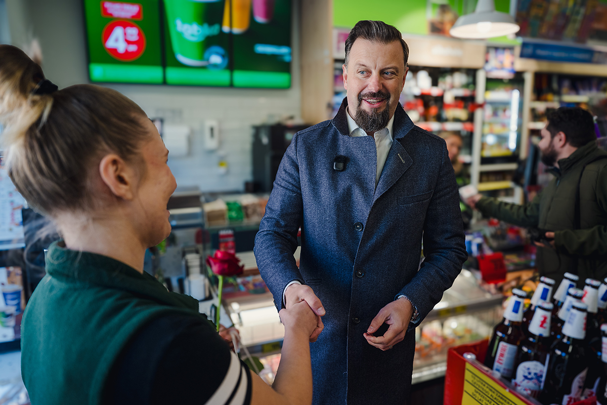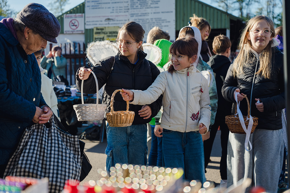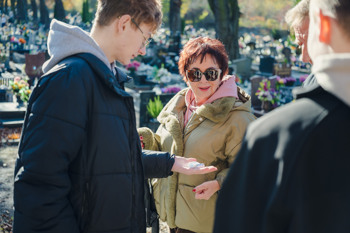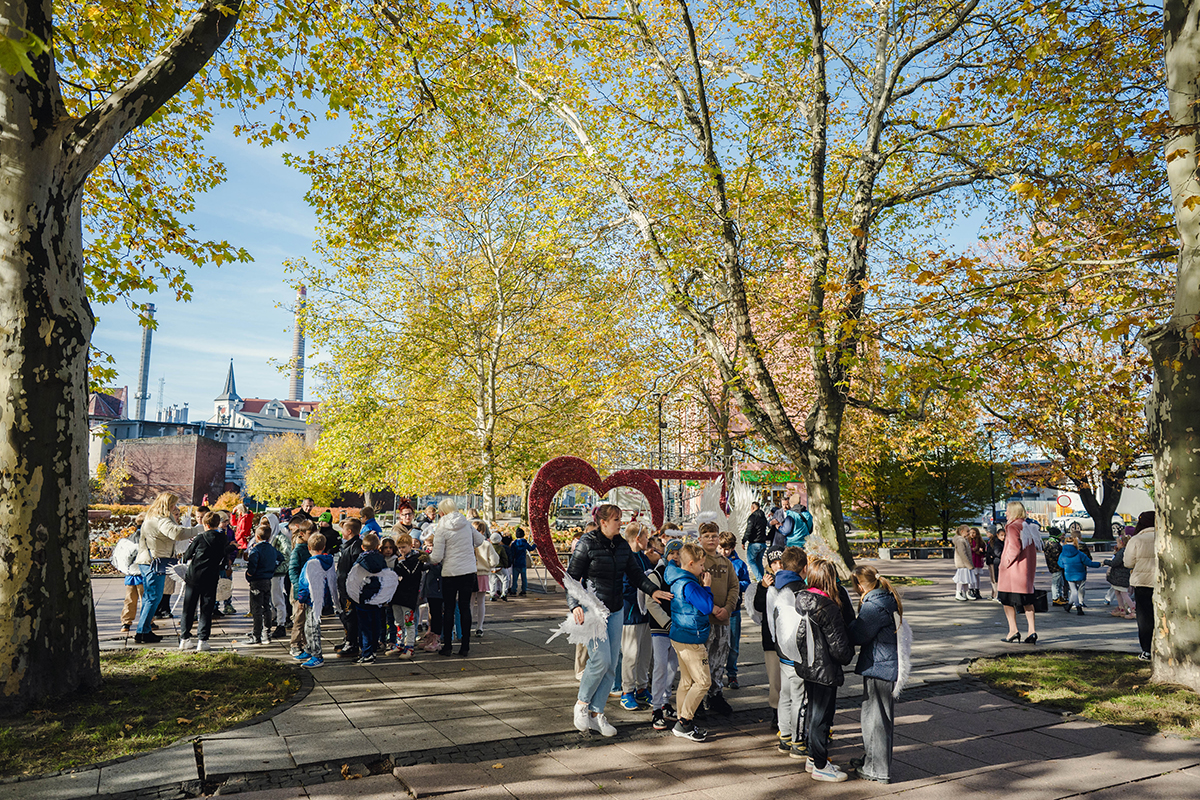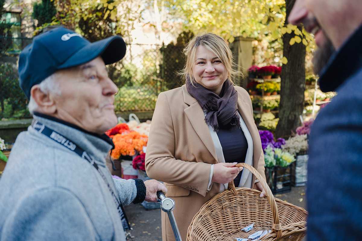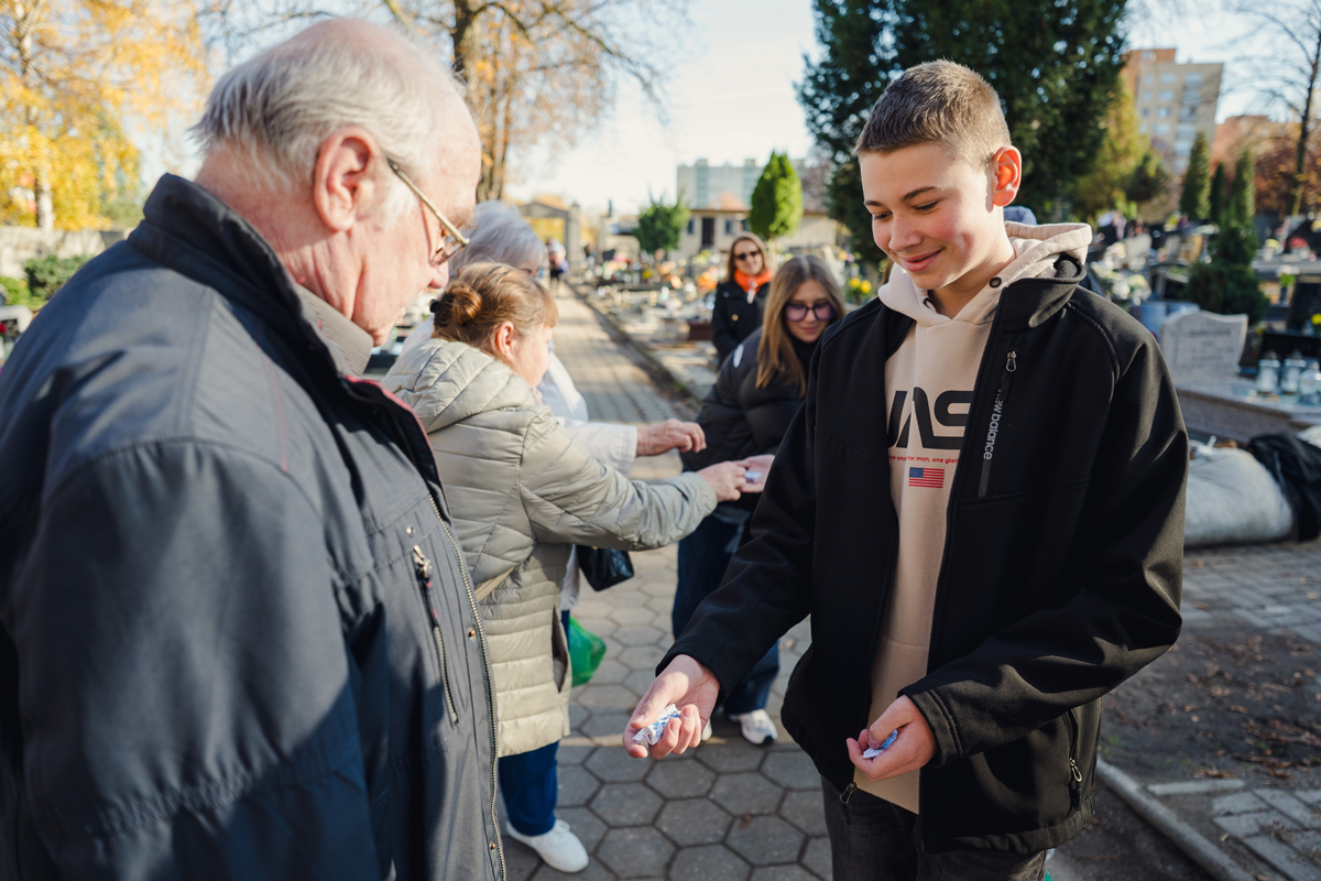 Najpierw, około godziny 10.00, uczniowie wspólnie z prezydentem i jego zastępcą częstowali – specjalnie na tę okazję przygotowanymi słodyczami – mieszkańców, którzy piątkowe przedpołudnie spędzali na zakupach na siemianowickim targowisku. Tam, wraz z cukierkami, można było otrzymać odblaskowe serduszko – a to, zwłaszcza w kontekście szybko zapadającego zmierzchu, jest niezwykle istotne z punktu widzenia bezpieczeństwa na drodze.