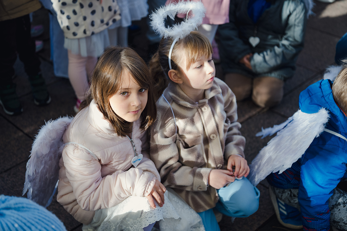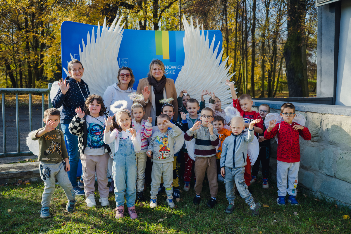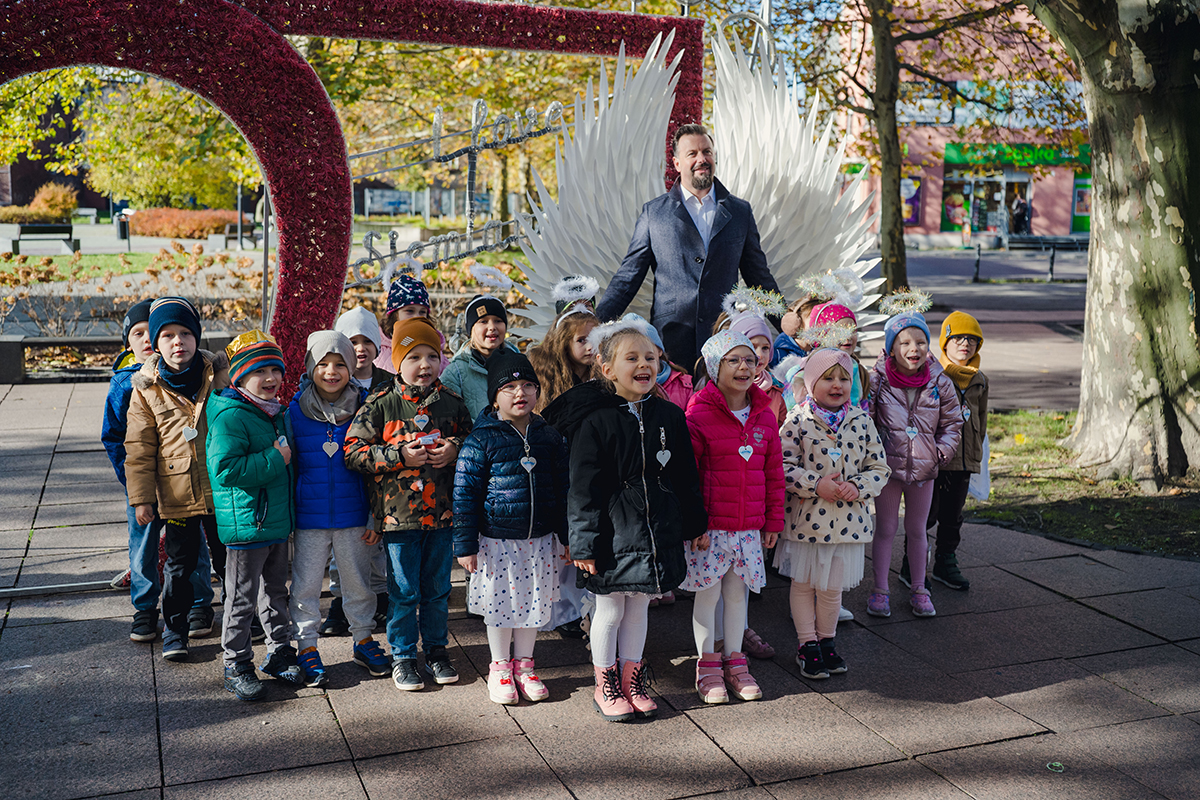 Kolejnym, sympatycznym punktem w scenariuszu dzisiejszego dnia, było wspólne – pamiątkowe – zdjęcie zrobione przy anielskich skrzydłach na siemianowickim Rynku. Następnie dzieciaki wyruszyły w miasto, niosąc pozytywne przesłanie.