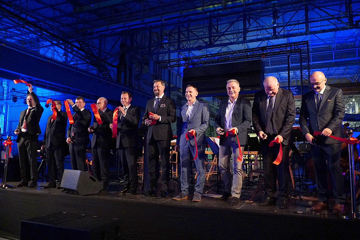 Dziesięciu przedstawicieli inwestora, władz miasta oraz wykonawcy stoi na scenie i jednocześnie przecina czerwoną wstęgę. Za nimi, na wprost publiczności, ustawiona orkiestra, mikrofony i industrialne tło. W tej chwili skupienie na twarzach ustępuje uśmiechom i uczuciu dumy.
