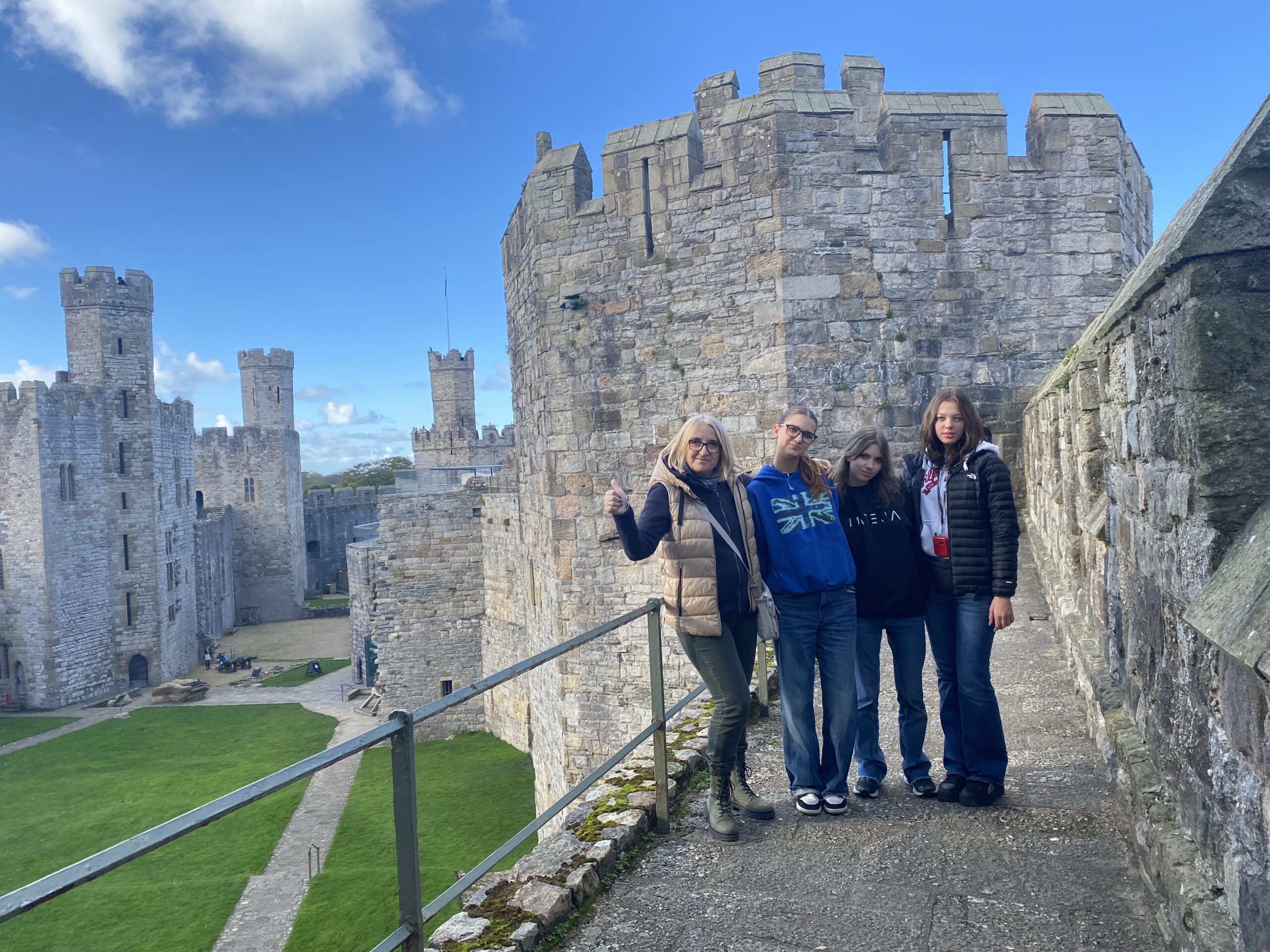 Dalej droga poprowadziła przez dolinę rzeki Ellan z licznymi tamami, wąskimi dróżkami i mostkami (prawdziwe wyzwanie dla kierowców autokaru) oraz mnóstwem owiec na każdym kroku (owiec w Walii jest 4 razy więcej, niż ludzi!) i nieziemskimi widokami, przez Devil’s Bridge do niewielkiej miejscowości turystycznej na wybrzeżu – Aberystwyth. To tutaj najbardziej przydały się czapki i szaliki, bo wiatr od morza nie zostawiał złudzeń – lato minęło. Kolejnym etapem podróży był zamek Caernarfon, historyczne miejsce powstania tytułu księcia Walii (to tutaj w 1218 roku Edward I powiedział do podbitych Walijczyków, pokazując im nowonarodzonego syna: „Daję wam księcia, który nie mówi słowa po angielsku”). Do dziś ceremonia nadania inwestytury odbywa się w tych pięknych murach. Zatrzymaliśmy się też w Llanfairpwllgwyngyllgogerychwyrndrobwllllantysiliogogogoch – wiosce o najdłuższej w Europie nazwie (aż 58 liter. Konia z rzędem temu, kto to przeczyta), a także zobaczyliśmy akwedukt, po którym można … przepłynąć kajakiem lub barką (tzw. houseboat).