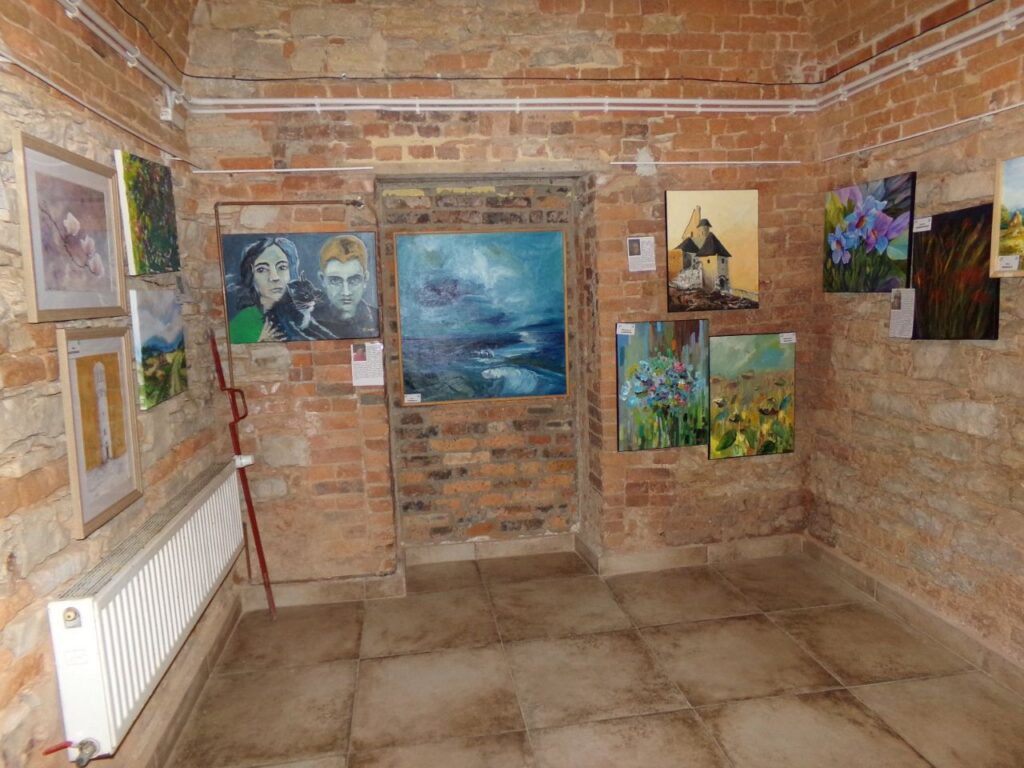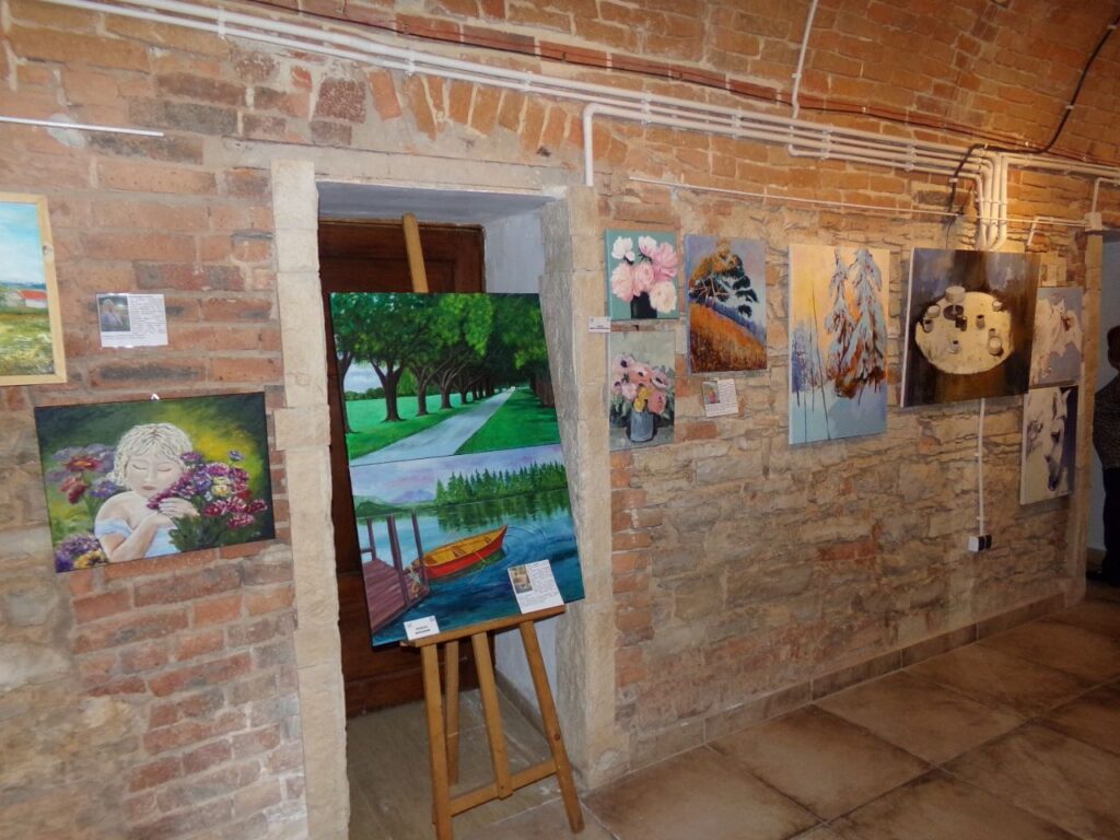 Po części artystycznej uczestnicy wernisażu udali się do sal ekspozycyjnych, gdzie obecni twórcy zaprezentowali swoje dzieła, omawiając ich tematykę. Można było podziwiać piękne obrazy, porcelanę i ceramikę, które powstały podczas pleneru, jak również wcześniejsze prace artystów. Wystawa wzbudziła ogromne zainteresowanie i zachwyt uczestników, tym bardziej że jej autorami są artyści – malarze amatorzy. Był to niezapomniany wieczór.