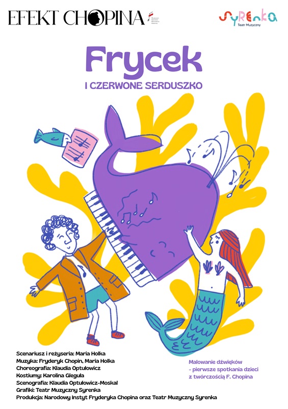 „Frycek i czerwone serduszko” to muzyczny spektakl dla dzieci i młodzieży, w którym zabawa spotyka się z historią. Laura i Julek, niechętni do przygotowania szkolnej prezentacji o Fryderyku Chopinie, trafiają w bibliotece na tajemniczy przedmiot. Dzięki niemu rozpoczyna się niezwykła podróż w czasie, która prowadzi ich prosto do dzieciństwa słynnego kompozytora. Spotkanie z jedenastoletnim Fryckiem odmieni ich spojrzenie na muzykę, pokazując czy właściwie jest muzyka klasyczna.