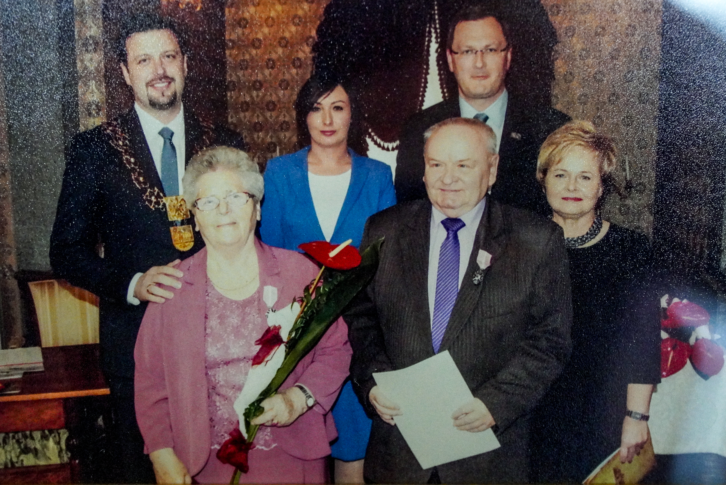 Na ścianie pokoju Jubilatów wisi pamiątkowe zdjęcie z uroczystości Złotych Godów, która miała miejsce dziesięć lat temu w Willi Fitznera. Na fotografii obok Pani Marii i Pana Jana znajduje się Prezydent Rafał Piech, Przewodniczący Rady Miasta Adam Cebula (obaj pełnią swoje funkcje do dzisiaj), Sekretarz Miasta Agnieszka Gładysz (obecnie Pierwsza Zastępca Prezydenta Miasta) oraz Grażyna Szulc, ówczesna Kierownik Urzędu Stanu Cywilnego. To piękne zdjęcie utrwaliło moment, kiedy wraz z Jubilatami świętują ich Złote Gody również władze miasta, dzieląc z nimi radość z niezapomnianych pięćdziesięciu lat wspólnego życia.