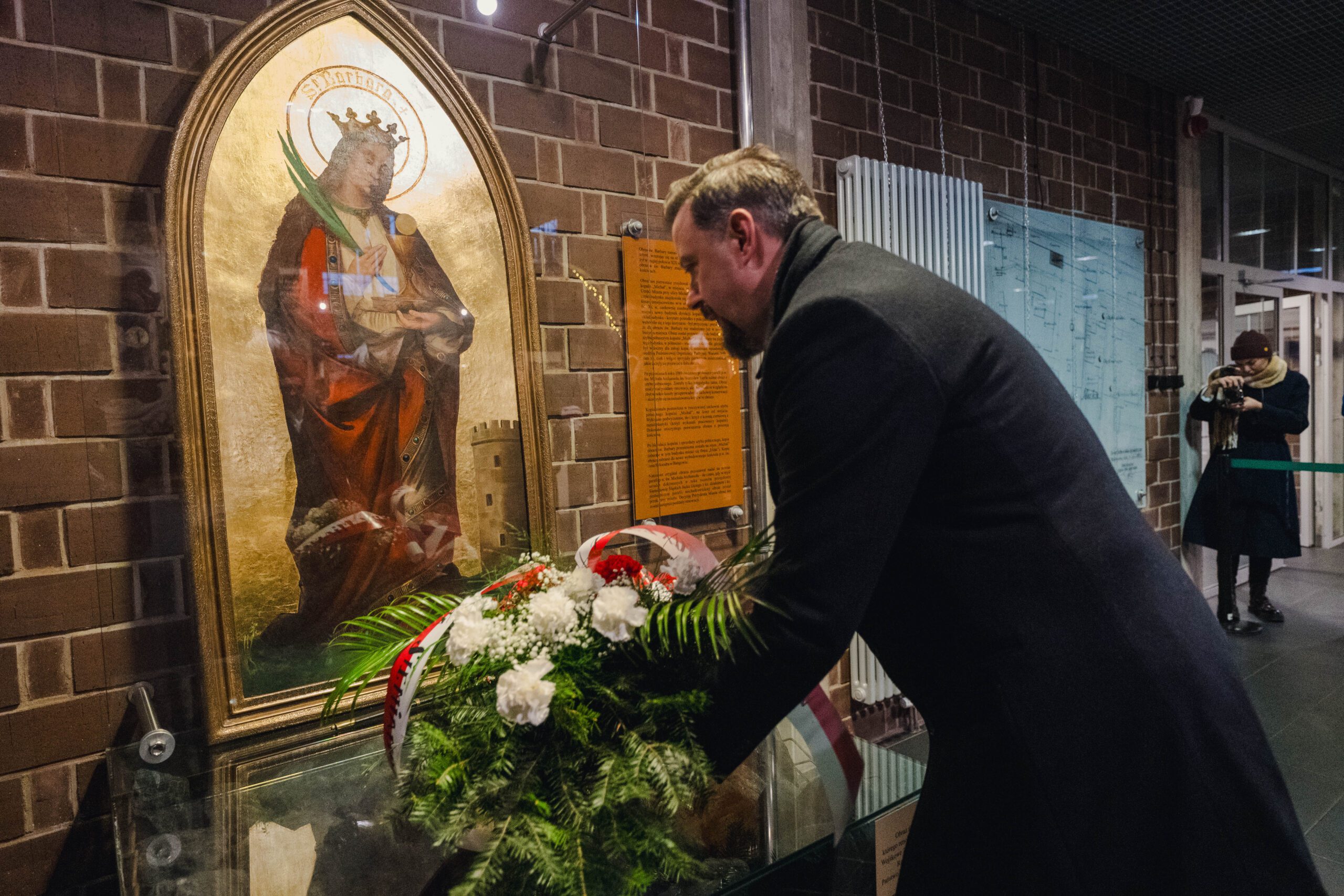 Przy obelisku upamiętniającym górników, „kerzy zginyli na szychcie na grubach Michał i Siemianowice”, zapłonęły znicze będące wyrazem hołdu dla ich ofiary. Następnie biało-czerwona wiązanka kwiatów została złożona pod obrazem św. Barbary w budynku Parku Tradycji.