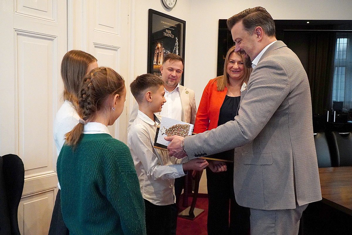 Uczniowie z SP5 z życzeniami u prezydenta miasta