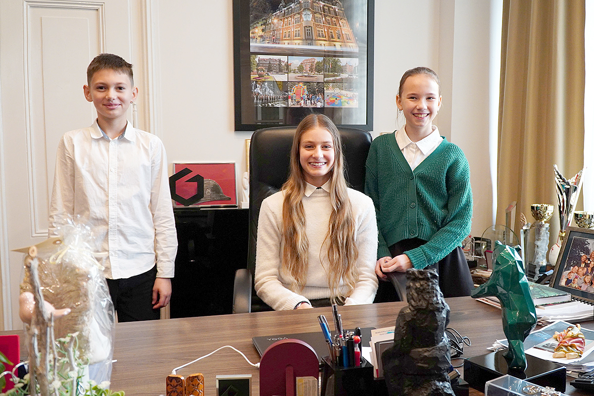 Uczniom towarzyszył Marcin Lazar, dyrektor szkoły. W trakcie tego sympatycznego spotkania, Maja, Lena oraz Daniele mogli porozmawiać z prezydentem oraz zapozować do pamiątkowej fotografii przy biurku na którym podpisywane są… najważniejsze dokumenty w mieście.
