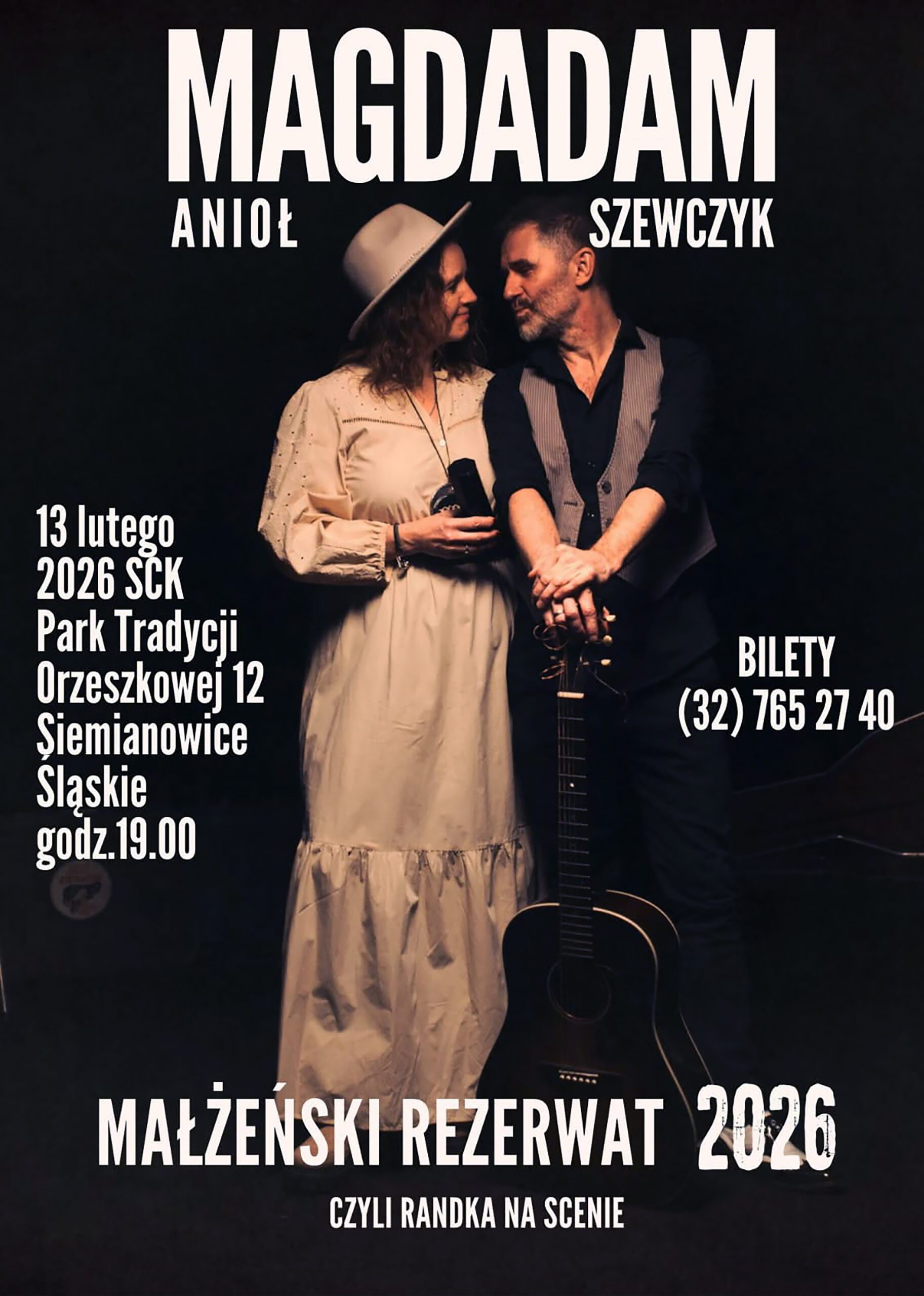 Wyjątkowy duet, który od lat zachwyca autentycznością i muzycznym kunsztem. Już 13 lutego w Siemianowicach Śląskich wystąpią Magda Anioł – charyzmatyczna wokalistka o charakterystycznym głosie oraz Adam Szewczyk – ceniony gitarzysta i kompozytor (autor m.in. hejnału naszego miasta). Artyści zapraszają na wieczór pełen piosenek i humoru pod tytułem „Małżeński Rezerwat”.
