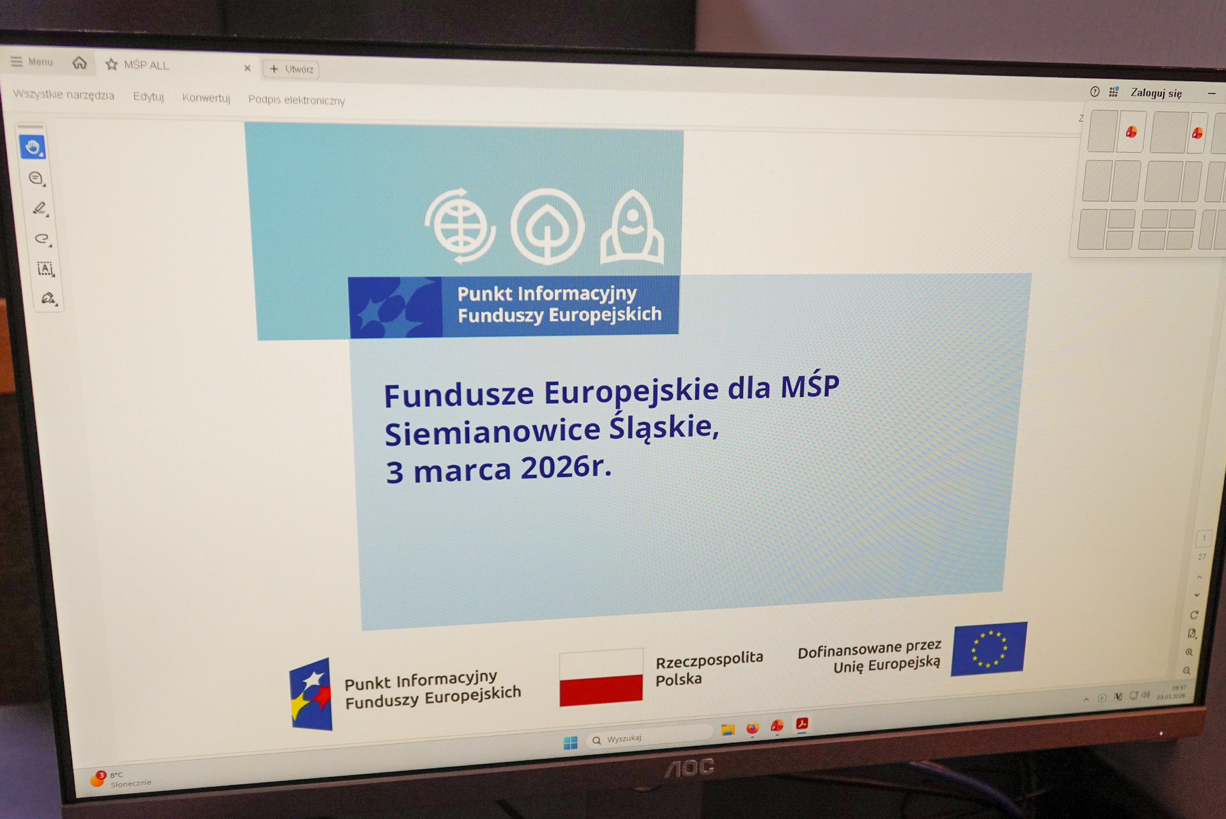 Urząd Miasta Siemianowice Śląskie we współpracy z Urzędem Marszałkowskim Województwa Śląskiego zorganizował spotkanie informacyjne pt. „Aktualne możliwości wsparcia dla przedsiębiorców z Funduszy Europejskich 2021–2027”, które odbyło się 3 marca 2026 r. Wydarzenie cieszyło się dużym zainteresowaniem ze strony lokalnych przedsiębiorców.