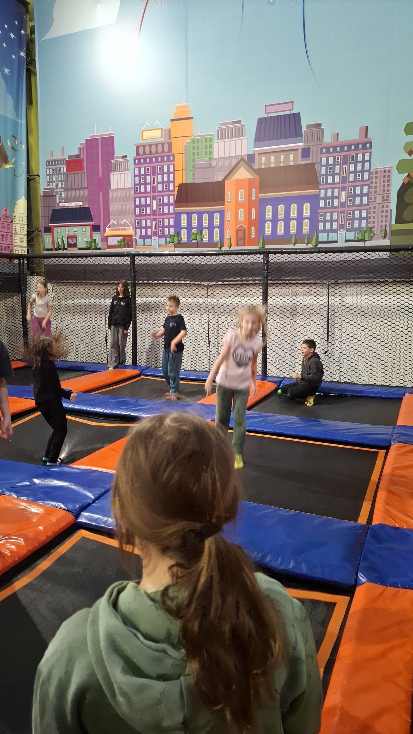 W ramach tegorocznych półkolonii zimowych uczestnicy wzięli udział w wyjeździe do Park Trampolin Happy Jumper w Tarnowskich Górach. Była to jedna z najbardziej wyczekiwanych atrakcji, zapewniająca dzieciom dużą dawkę ruchu, energii oraz świetnej zabawy. Podczas pobytu w parku uczestnicy korzystali z różnorodnych stref trampolin, torów przeszkód, basenów z gąbkami oraz stanowisk do akrobatyki. Instruktorzy czuwali nad bezpieczeństwem dzieci, prowadząc krótkie szkolenie dotyczące zasad korzystania z urządzeń oraz właściwego zachowania na trampolinach. Wyjazd sprzyjał integracji uczestników, rozwijaniu koordynacji ruchowej, równowagi i ogólnej sprawności fizycznej. Dzieci z ogromnym zaangażowaniem brały udział w aktywnościach i chętnie podejmowały nowe wyzwania. Humory dopisywały wszystkim, a radość i satysfakcja po zajęciach były widoczne na twarzach uczestników. Aktywność w Parku Trampolin okazała się doskonałym połączeniem sportu i zabawy, a sam wyjazd stał się jednym z ulubionych punktów programu półkolonii.